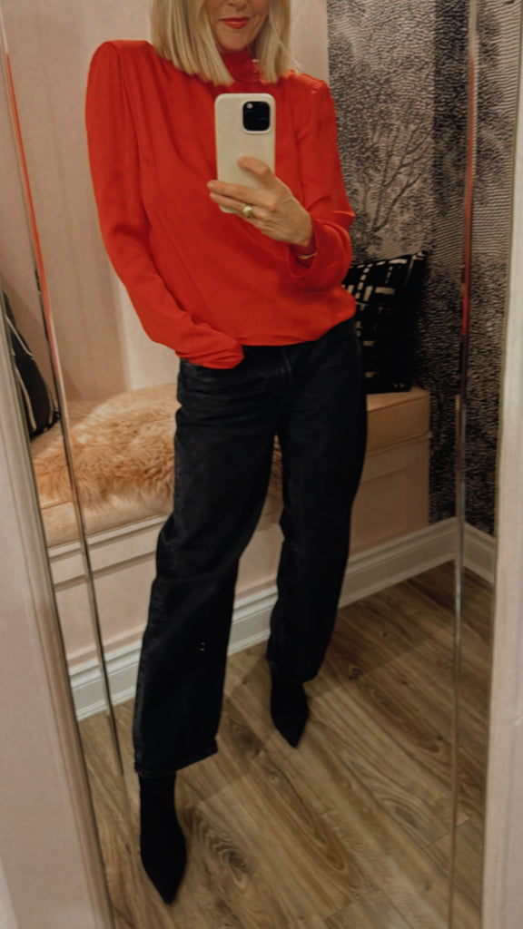 Rebecca is 5’5, and typically a size 4. She is wearing size 6 for a slouchier fit.