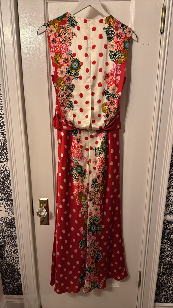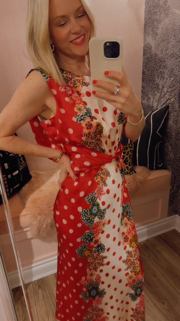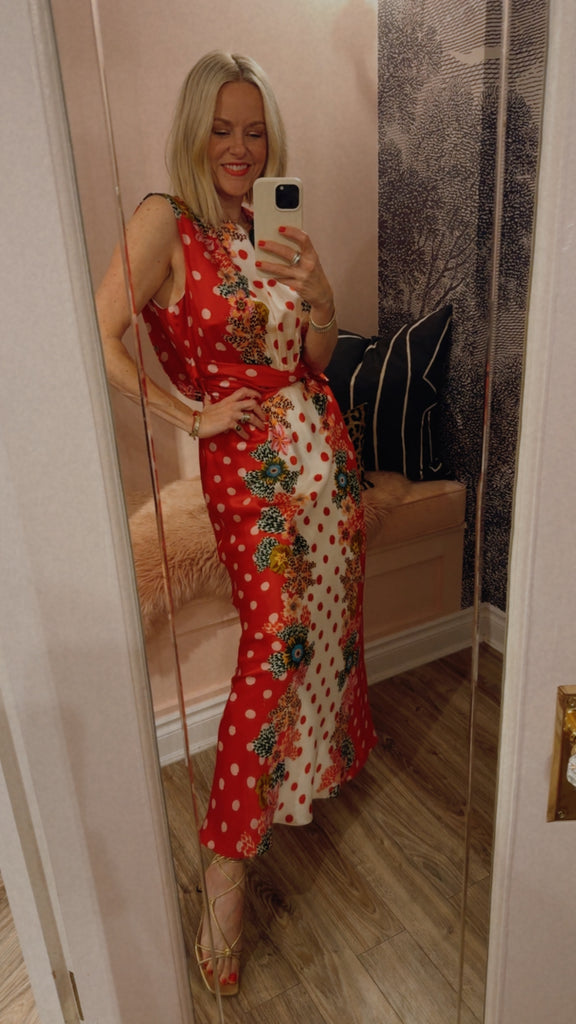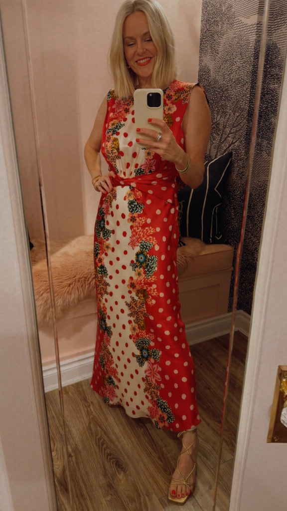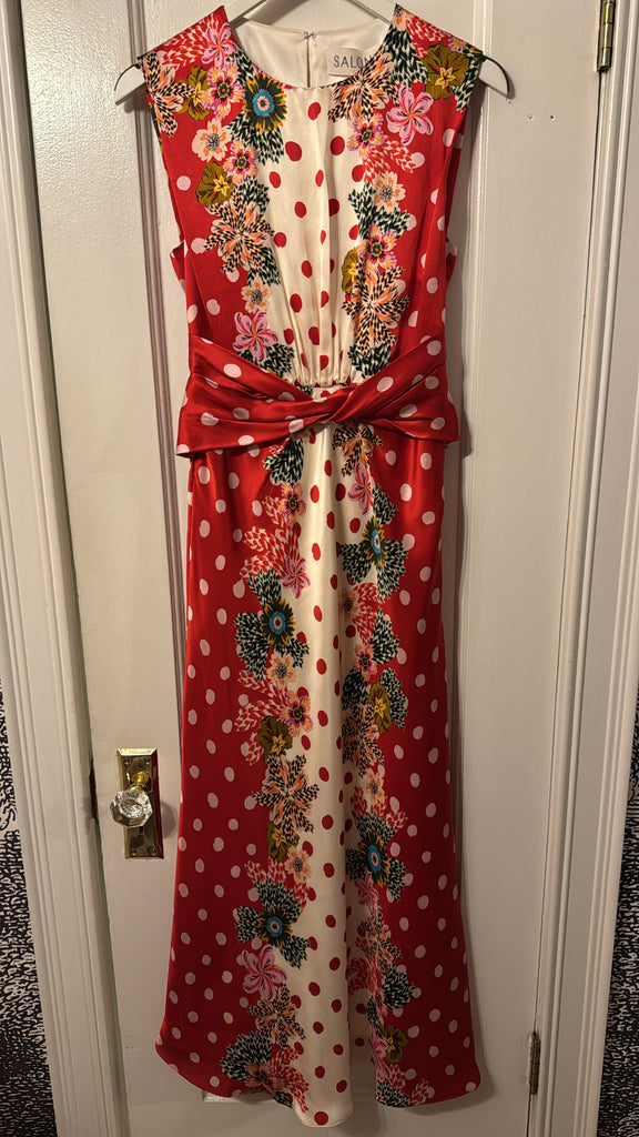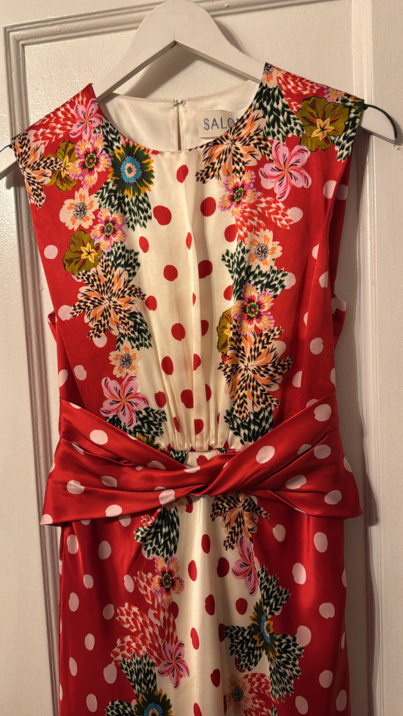 The Gwen Dress is a study in effortless elegance. Its sleeveless design features a beautiful twisted detail on the bodice and soft gathers at the waist, creating a flattering silhouette. The print features luscious plumeria borders that contrast strikingly with the fresh and classic polka dot base. Perfect for parties and weddings, this timeless, refined dress is ideal for celebrating life’s most memorable moments.