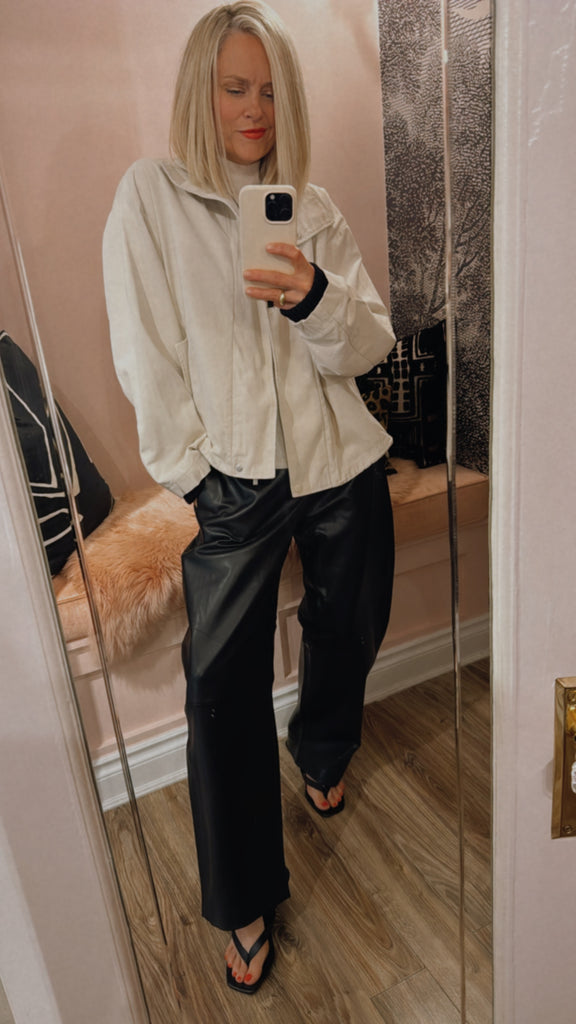 Rebecca is 5’5, and typically a size 4. She is wearing size Medium for a slouchier fit.