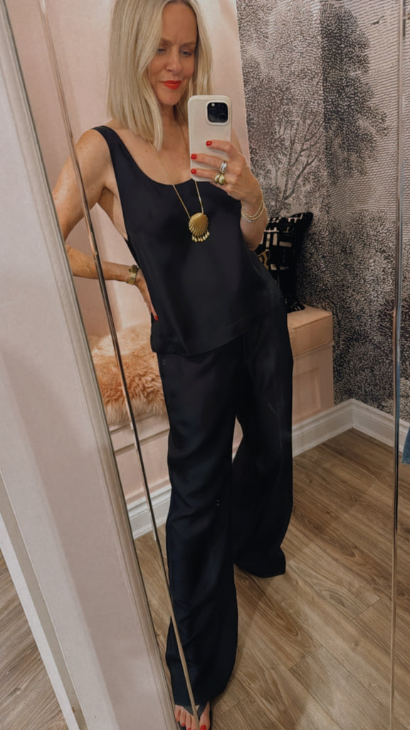 The Silk Twill Pants offer a relaxed yet tailored silhouette. Crafted from fluid silk twill, they feature a mid-rise waist and discreet pocket detailing. The straight-slim leg delivers an effortless profile suited to both structured and relaxed pairings. Style with the the Jordan Button Up Top for a seamless ensemble.