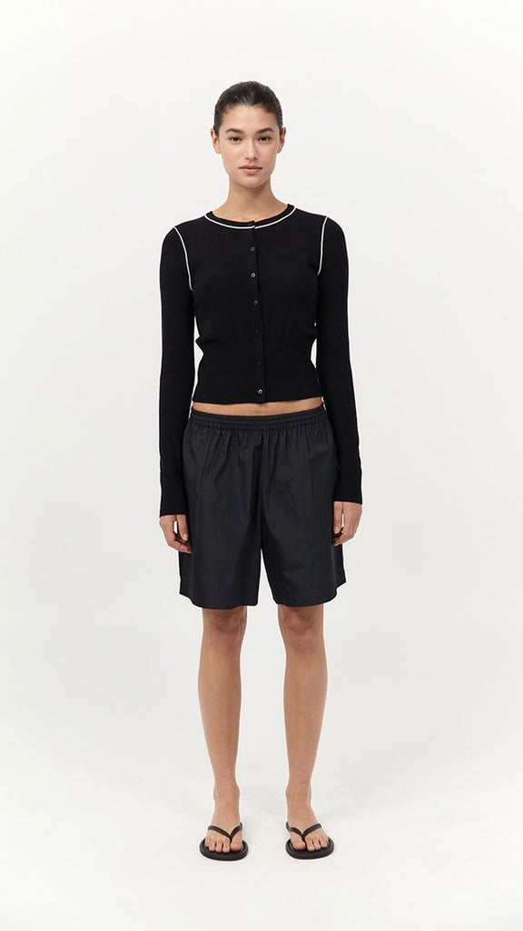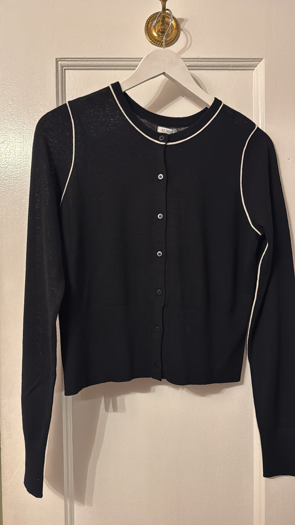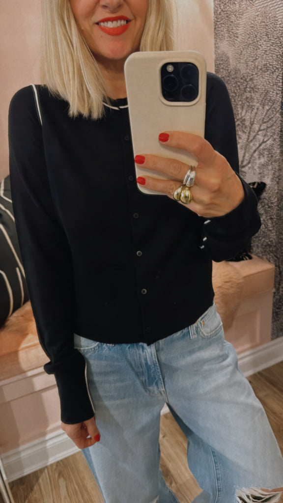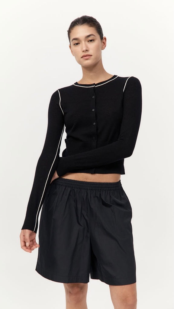Crafted from 100% responsibly sourced Merino wool, the Wool Fine Line Cardigan features a classic crew neckline, long sleeves and a button-down front. Ribbed cuffs, hem and neckline provide subtle structure, while fine contrast piping adds a refined, modern touch.