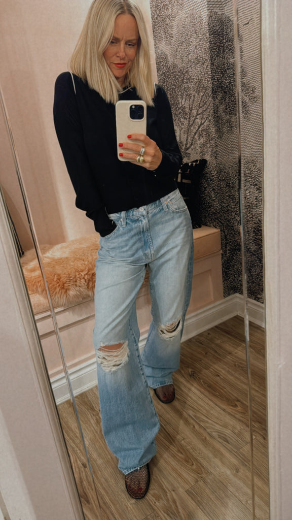 Rebecca is 5’5, and typically a size 4. She is wearing size Medium. It fits small.
