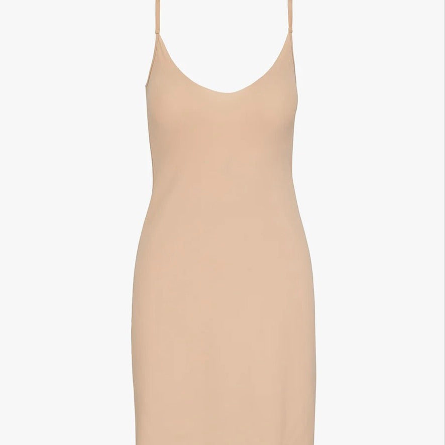 With a deep neckline and adjustable straps, the tailored slip is a fan favorite! Hitting mid-thigh and providing the perfect foundation for your dress to have a beautiful drape. Constructed from luxe European microfiber with raw-cut edges, and finished with commando's patented weighted hem to prevent ride-ups.