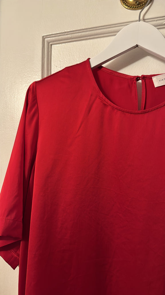 60% Triacetate, 40% Cupro, in Sunset Red.