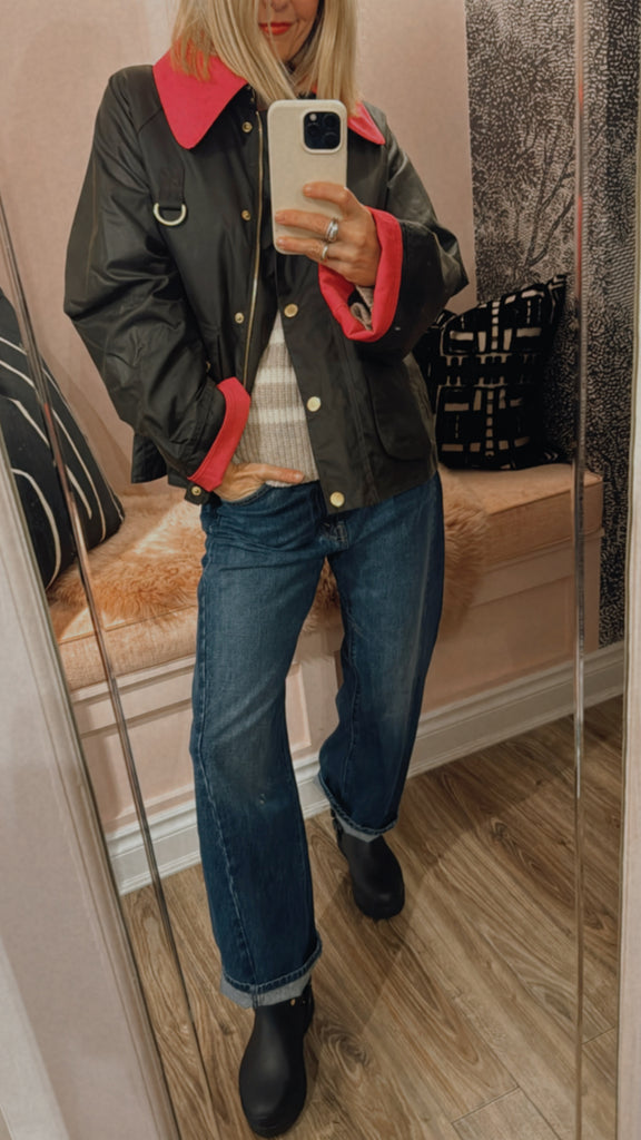 First introduced into the range in 1981, the Barbour Spey Waxed Jacket is one of Barbour's most sought-after silhouettes. Following its discontinuation in 1997, the Spey has been re-introduced into the waxed jacket range in many reiterations, this season, in the form of the Barbour Icons Spey Waxed Jacket. Still crafted our of the iconic waxed cotton and detailed with the D-ring tab detail, synonymous with the Spey, this vibrant new take is finished with a bold pop of colour to the cord collar and turnback cuffs.
