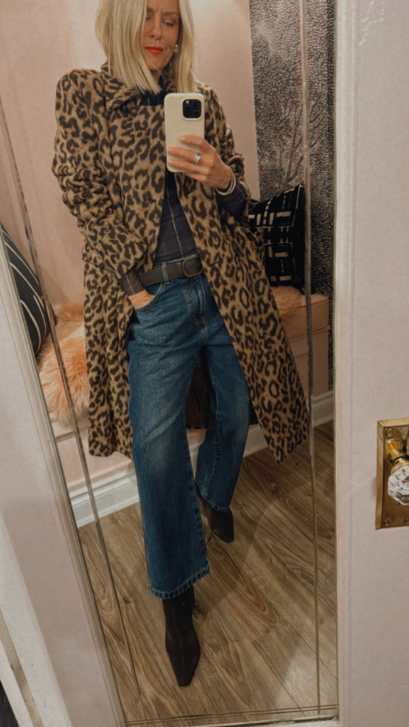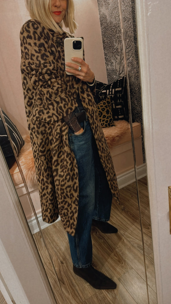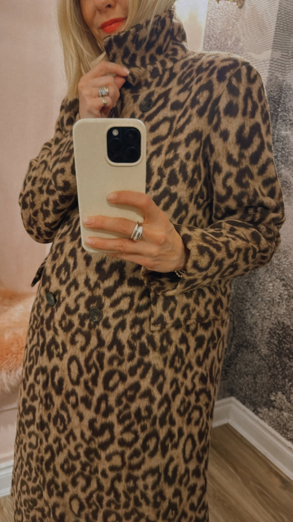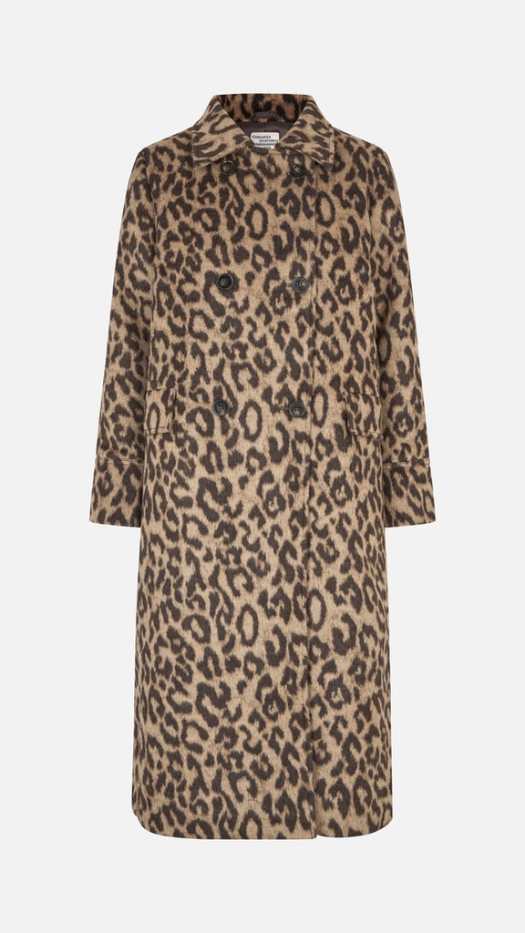 The Dixie Coat is truly a statement piece with its bold leopard print that gives every outfit a confidence boost. The cool outerwear is made in a comfy wool blend and keeps you warm with its collar, long length and extra long sleeves. The wool coat has an oversized fit with a classic double breasted button closure as well as a buttoned waist belt at the back, which makes it possible for you to adjust the fit to your liking. Your new favourite and vibrant companion this season.