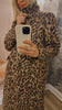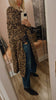 56% Wool, 24% Acrylic, 26% Polyester in Camel Leopard Print.