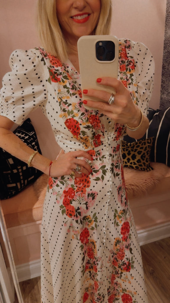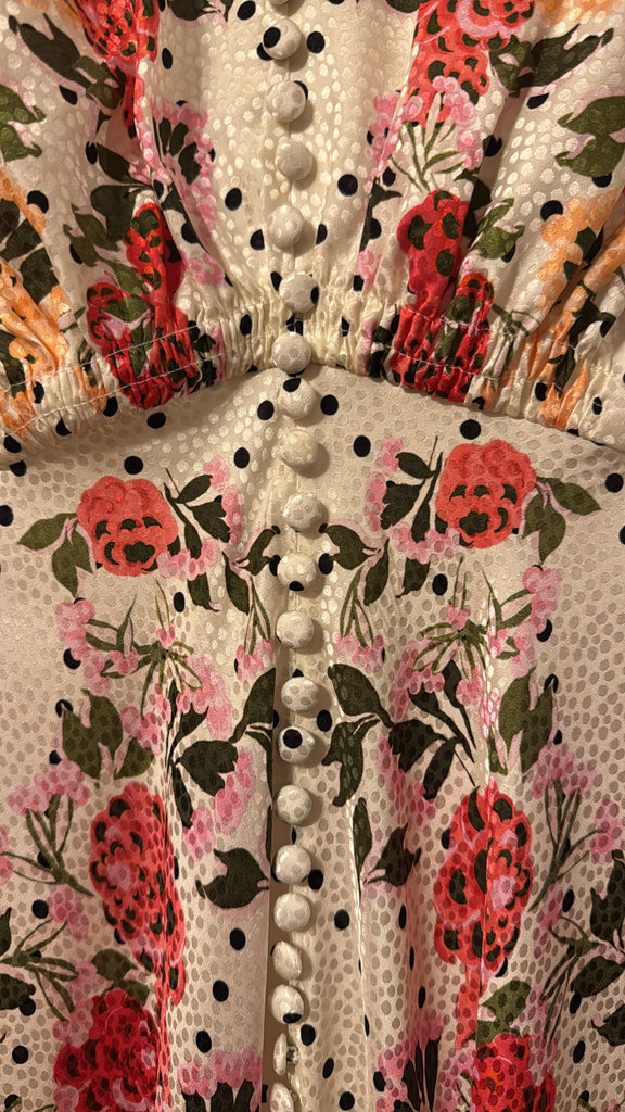 100% Silk, in 'Rouge Polka Dot' (Cream Multicolour).