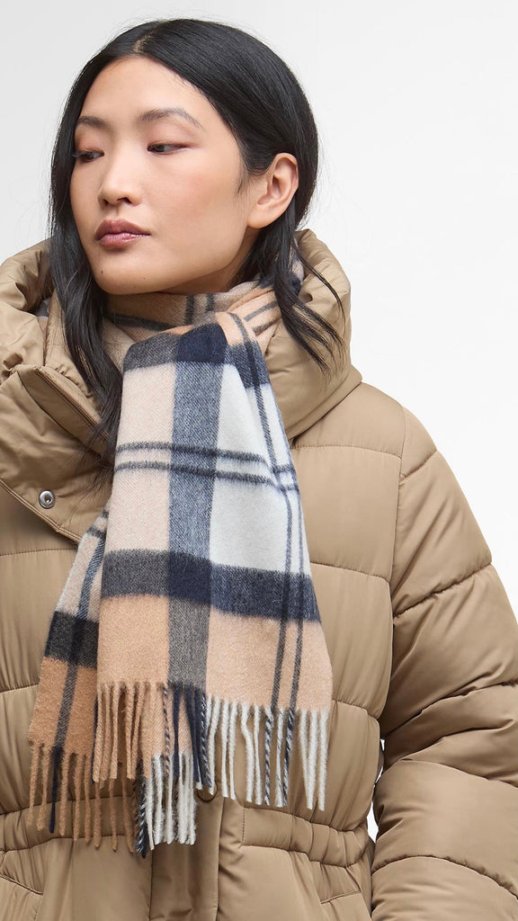 The Barbour Tartan Cashmere Scarf has been crafted from premium cashmere, that’s great for layering in cold temperatures. This stylish garment comes in an all-over signature tartan pattern and is finished with a large tassel trim.