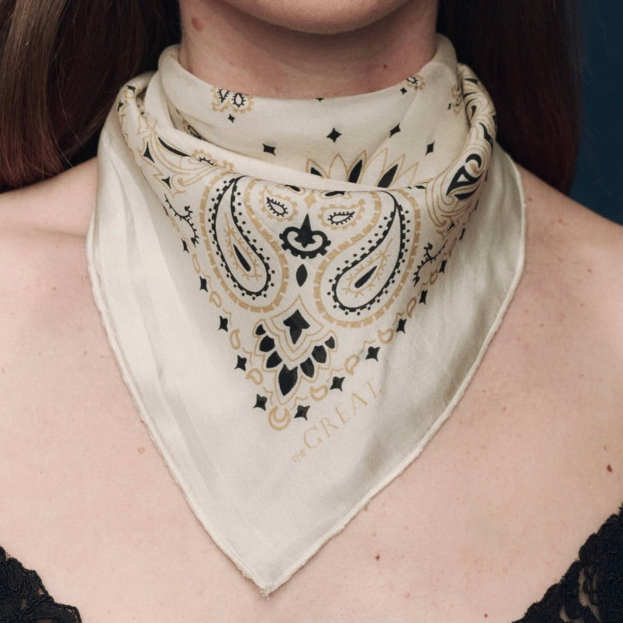 The Silk Bandana is made from 100% silk habotai and finished in a palette of earthy, versatile tones. Inspired by our years of collecting vintage bandanas, this version brings forward the same timeless feel in a lofty, lightweight fabric. A piece to hold onto, 100% SILK, in Cream.