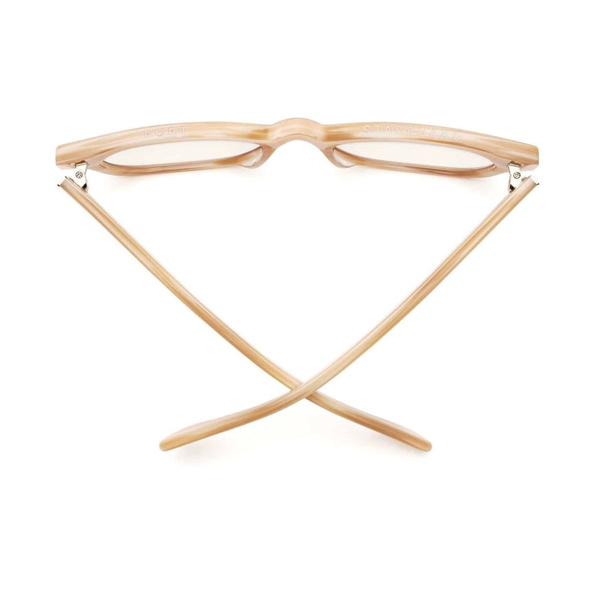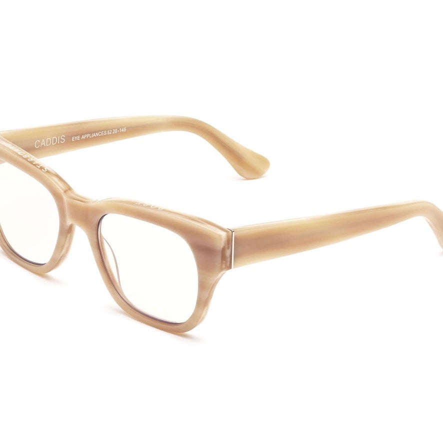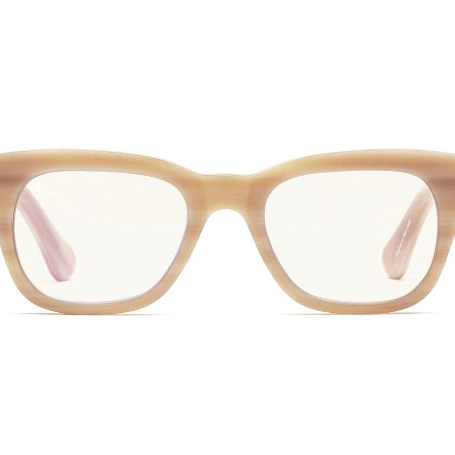 In 'Bone' (Light Beige) with Clear lenses.