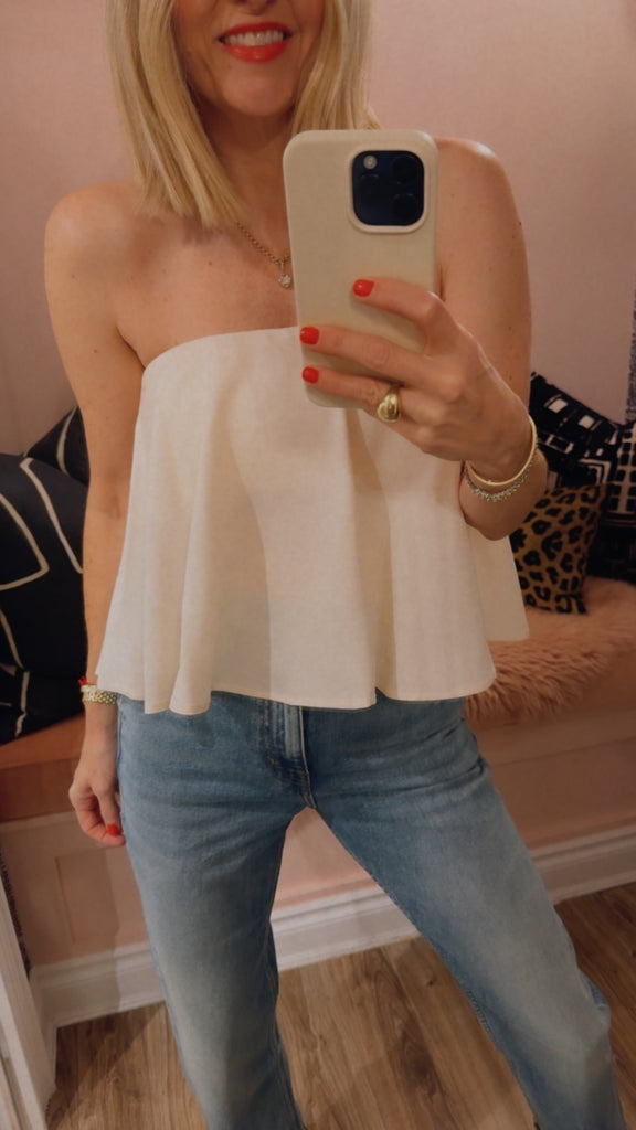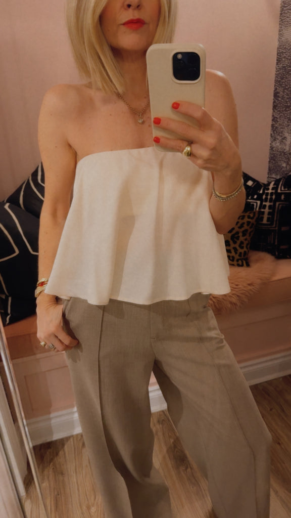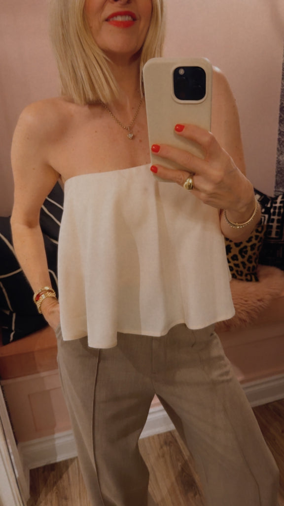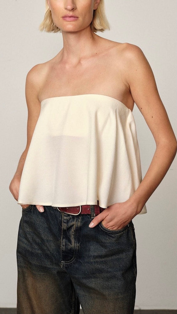 Opal strapless top features fluid acetate pieces with a soft, silky hand-feel and elegant movement. Designed for effortless occasion dressing and polished everyday looks.