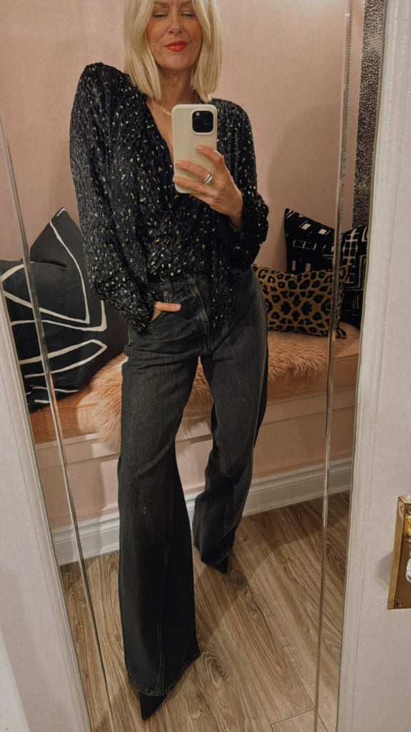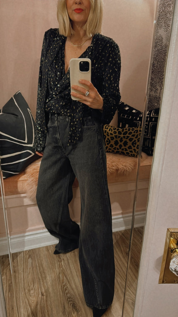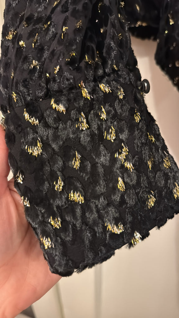 The Kayliegh tie top is made from a luxe fil-coupé fabric with metallic accents throughout.