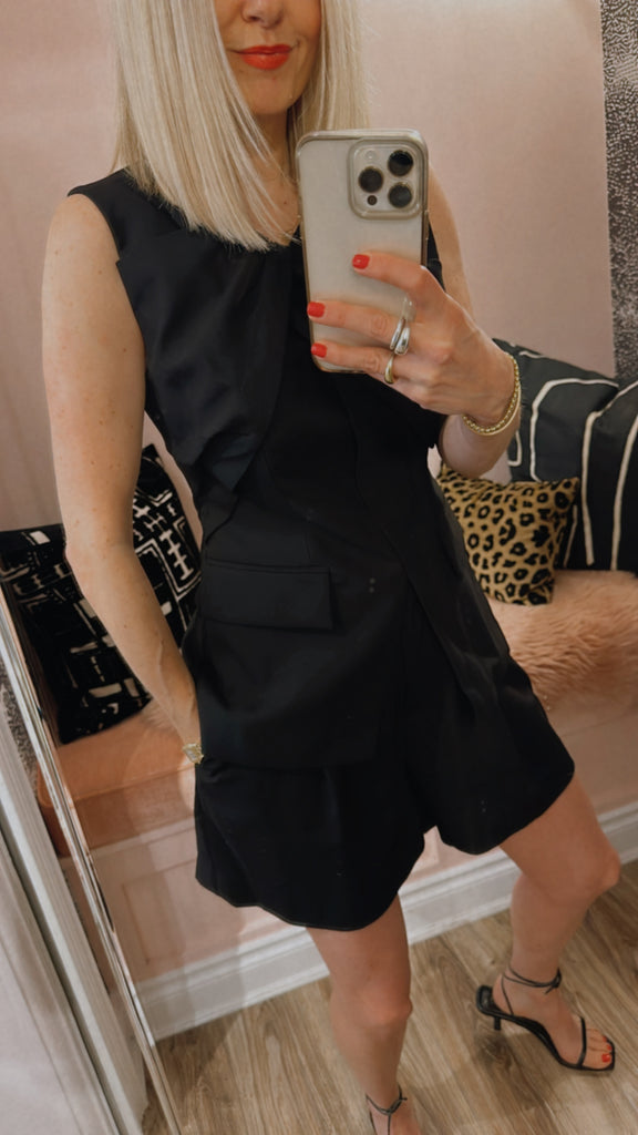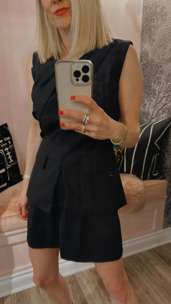 Introducing the Newbewick Short in Black, a refined addition to tailored separates. These high-waisted shorts feature a front zip fly closure and are designed with double belt and D-ring details for a modern edge. Fully lined and complete with functional front pockets, they offer both style and practicality, making them a versatile piece for elevated casual or polished looks.