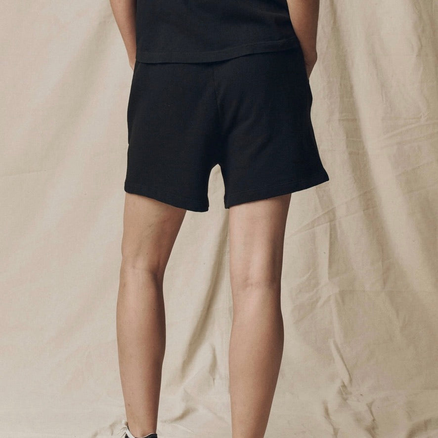 The Victory Short is designed for ease, movement, and everyday wear. It features a wide self-fabric waistband with stitched-through encased elastic for a subtle athletic edge, wide welt pockets for function, and no side seams for a clean, relaxed fit. Crafted from washed cotton terry with the softest hand and vintage feel.