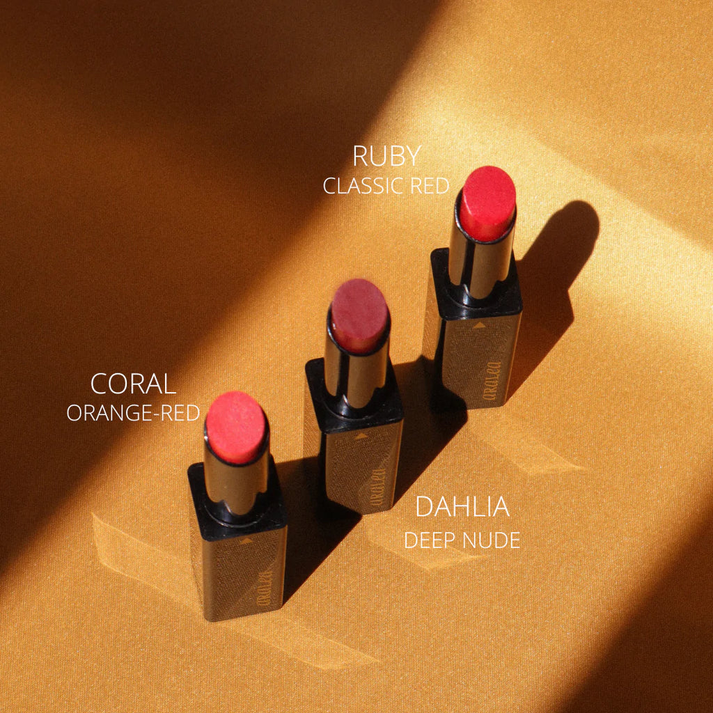 Our CORAL tint is reminiscent of a hot, humid summer. With one swipe of this vivid colour across your lips, you’ll be transported to a scene of sprinklers spraying from red fire engines and music blasting from a boombox. This bright red will bring a glow to your lips that will stop traffic.