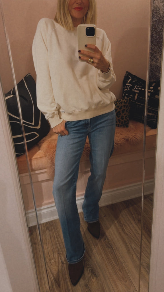 An oversized raglan sweatshirt with a crewneck, ribbed hems and a slightly cropped fit. Made from super-soft 100% cotton, the sweatshirt is designed in cream.