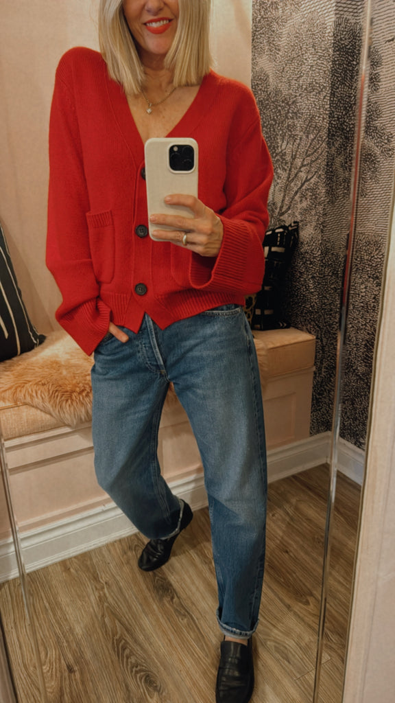 A permanent wardrobe fixture, the Danni cardigan is crafted in 7 gauge, heavy knit cashmere for shape and structure. The relaxed fit and neat silhouette feature a deep v-neckline, dropped shoulders, straight wide sleeves, patch pockets and ribbed trims.