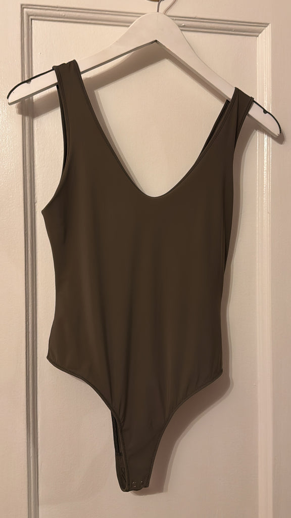 73% Polyamide, 27% Elastane, in 'Grove' (Olive Green).