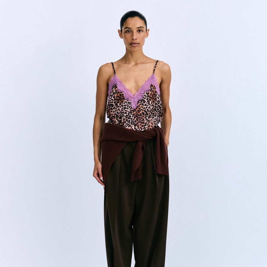 Pip camisole with a flattering V-neck and loose fit in a leopard print