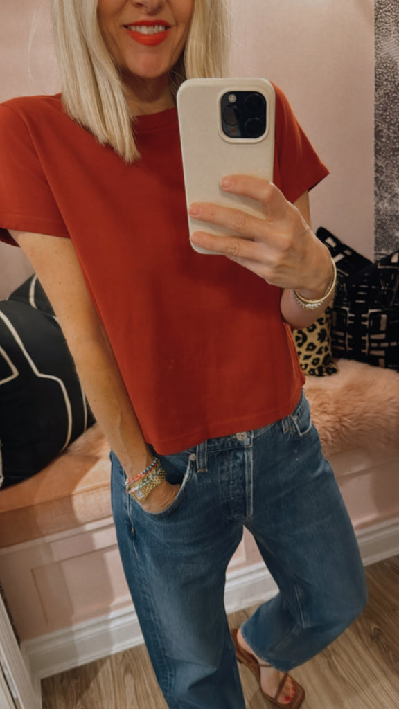 The Adine is a wardrobe essential, crafted from breathable, ultra-soft organic cotton. Ideal for wearing solo or layering, it pairs effortlessly with denim shorts or low-rise jeans, creating a timeless and flattering look.