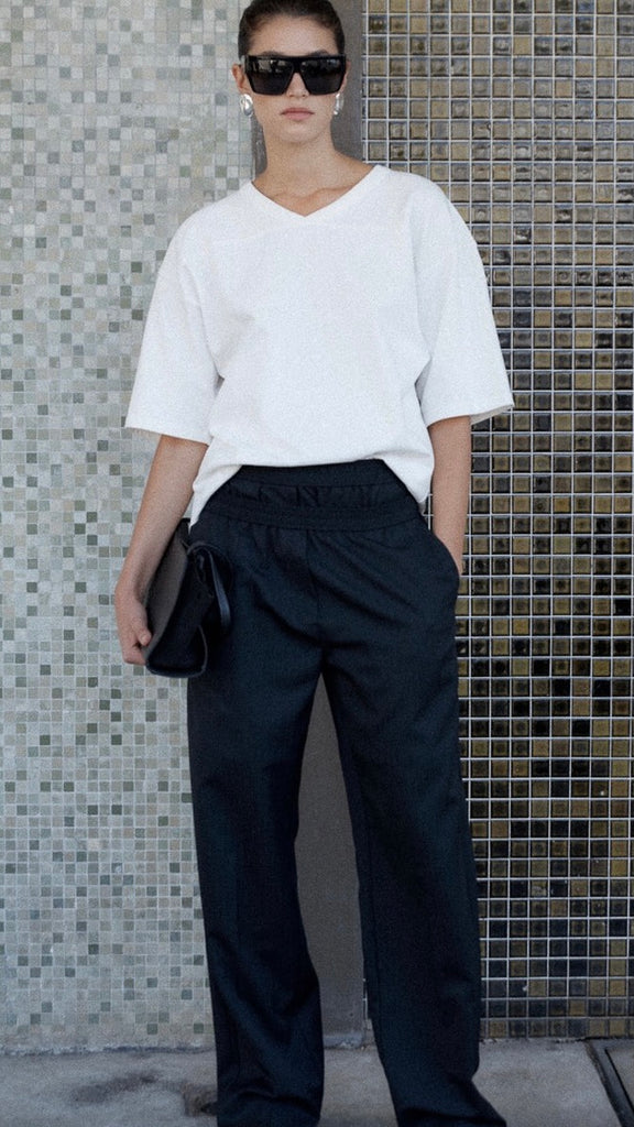 Designed for everyday ease, the Organic Cotton Match Tee reimagines a wardrobe staple with architectural panel detailing. Cut from certified organic cotton, it features a V-neckline, short sleeves and a boxy fit.
