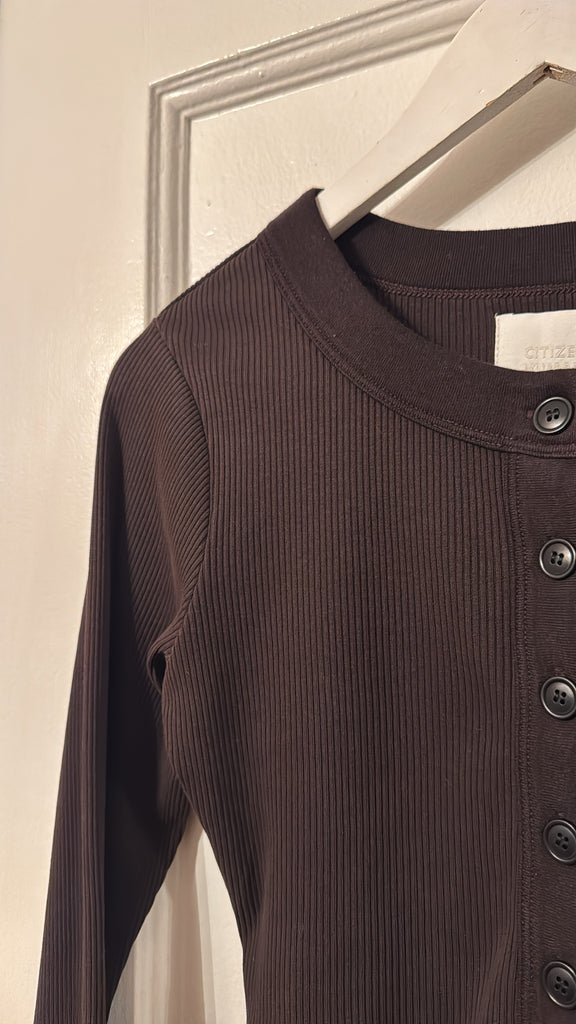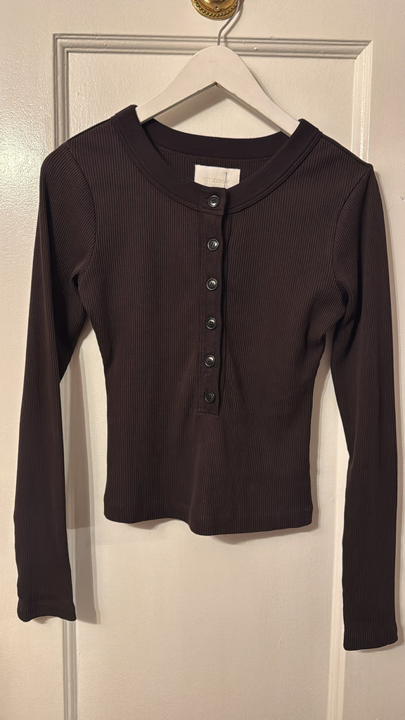 49% Cotton, 49% Lyocell, 2% Spandex, in Chocolate Brown.