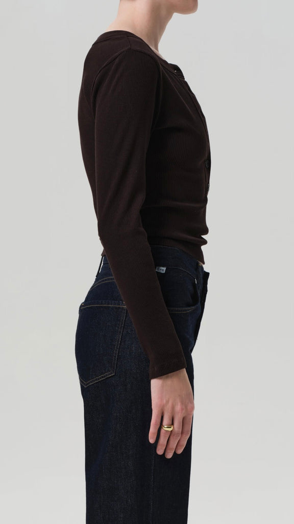 The ‘Varra’ is a refined henley crafted from ultra-soft ribbed cotton with supportive stretch. Featuring a close fit and subtle neckline detailing, it’s a modern essential designed to layer or stand alone with ease.