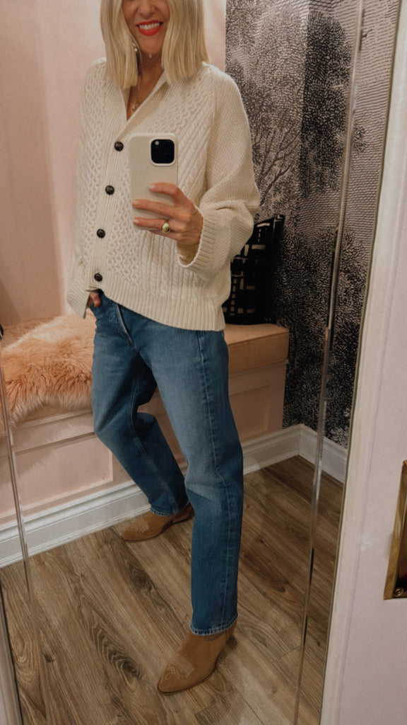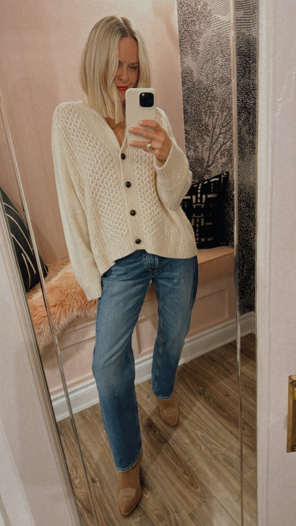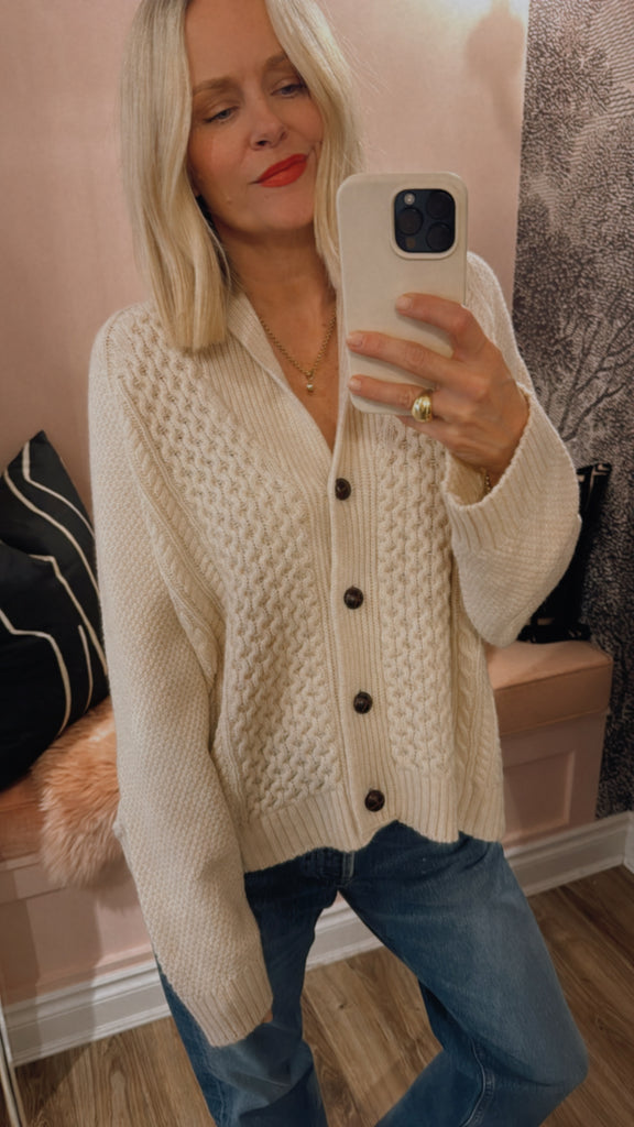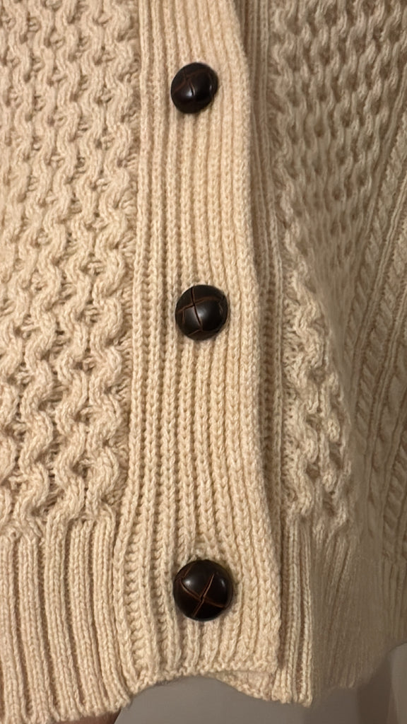 Spun from 100% cashmere in a traditional cable stitch, The Cashmere Cable Lodge Cardigan is a warm and textural layer with a relaxed shape. It features raglan sleeves, a shawl collar, and real leather buttons. Soft yet substantial, this version is slightly slouchier than the original Lodge silhouette—easy to pack, easy to wear, day after day.
