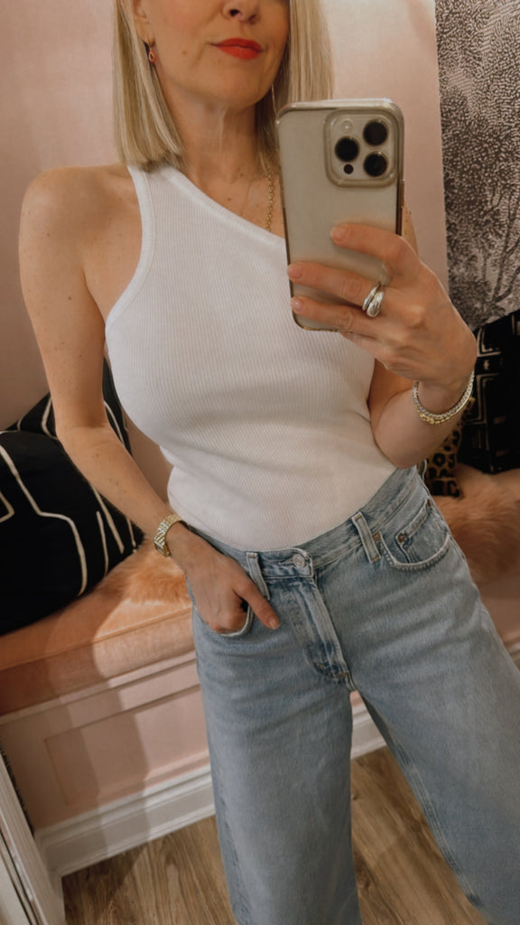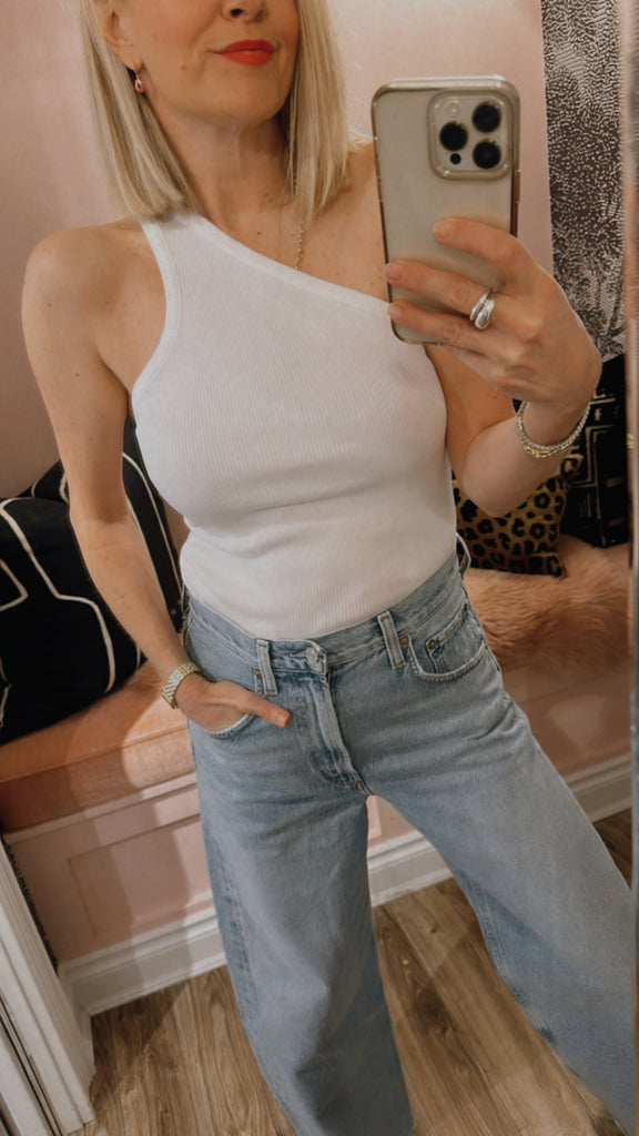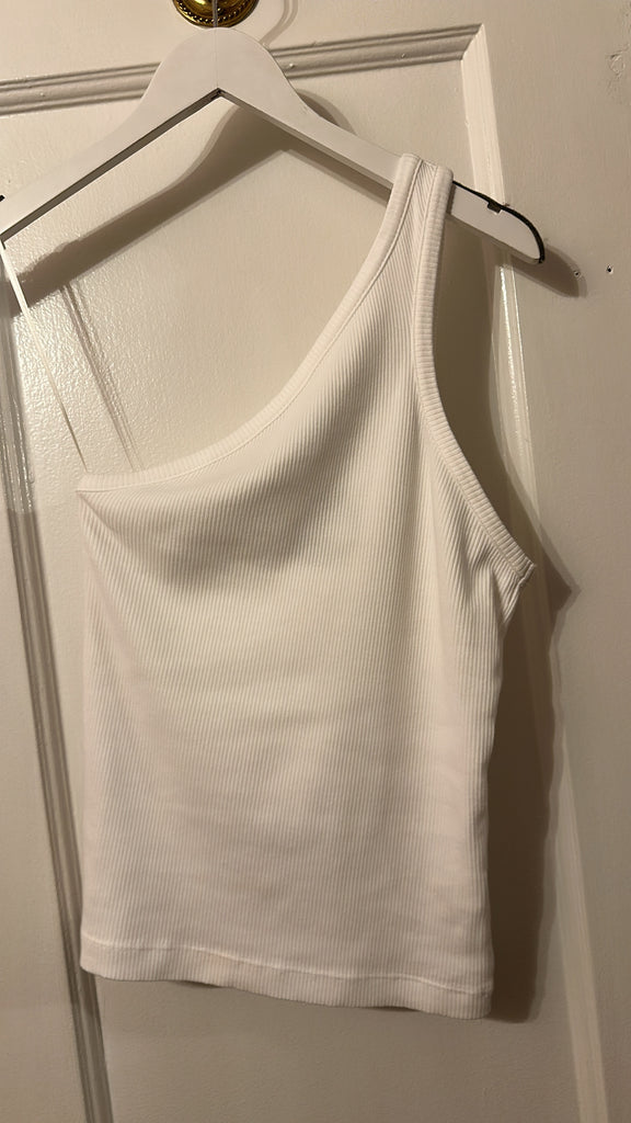 The Verica is a one-shoulder ribbed tank crafted from soft, organic cotton. This form-fitting design combines sleek simplicity with a modern edge. Perfect for layering or wearing solo, it pairs effortlessly with everything from high-rise jeans to tailored trousers.