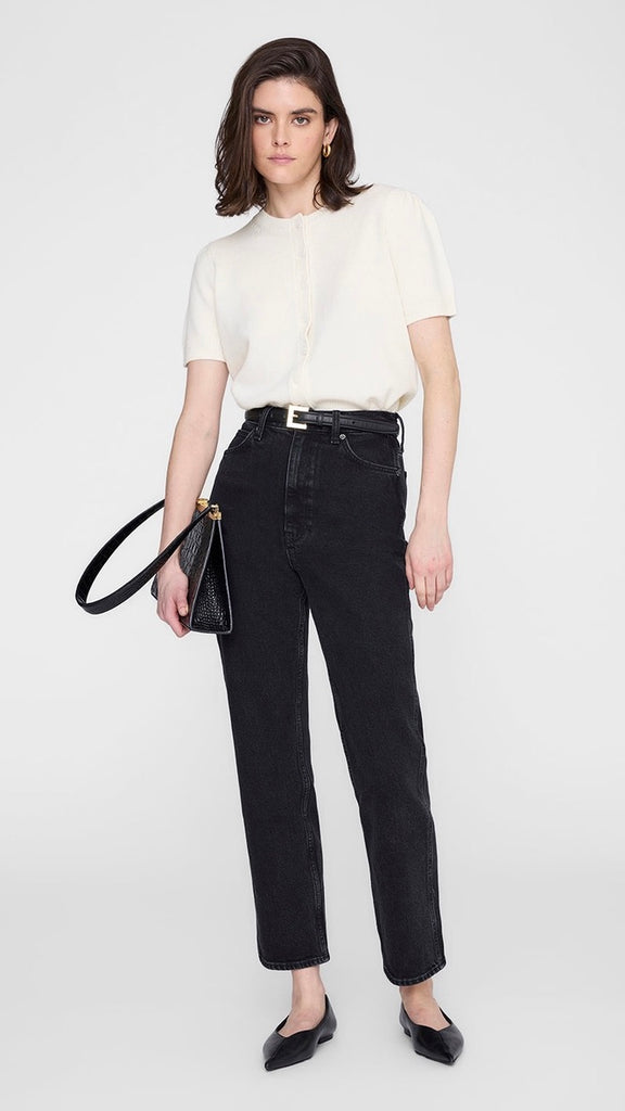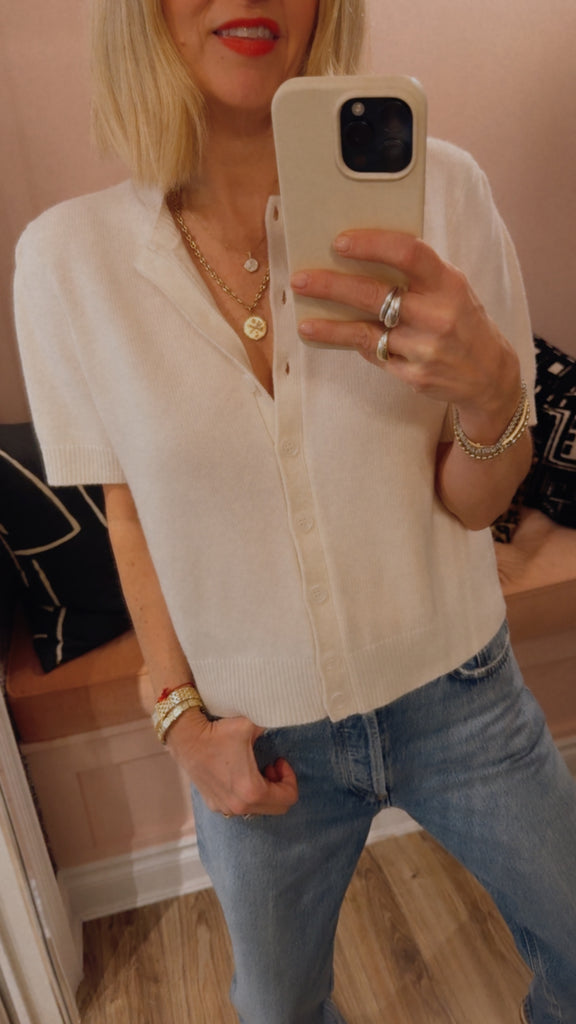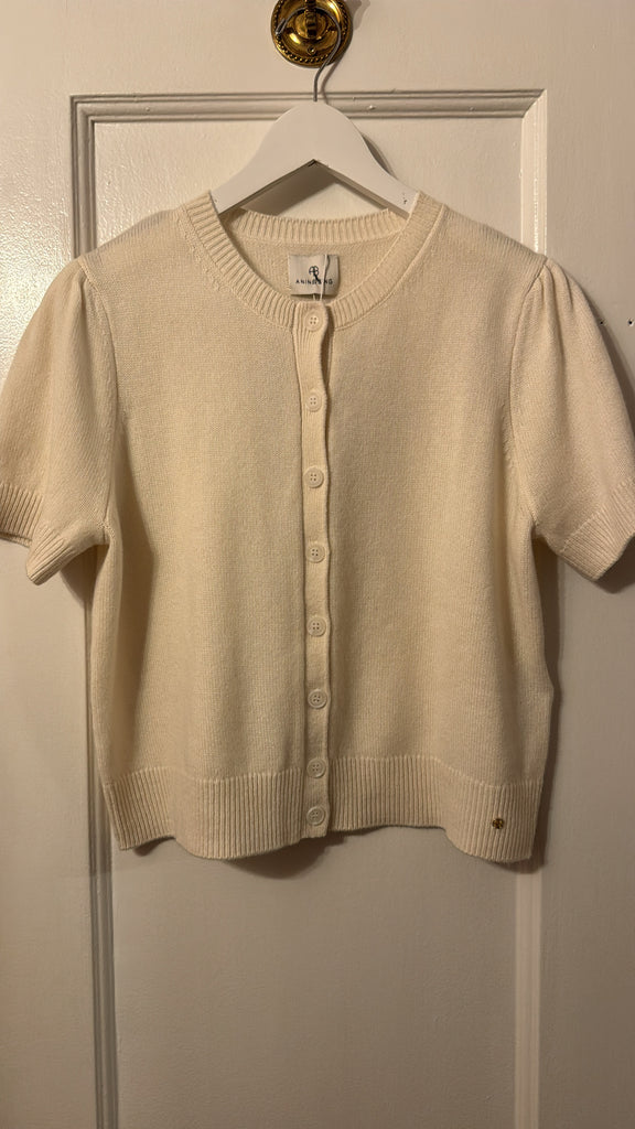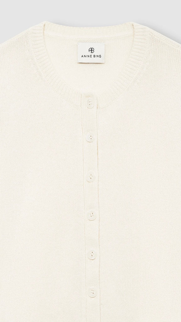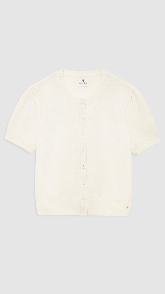 The Gracie Cardigan is a refined knit crafted from soft, midweight 100% cashmere in a smooth jersey stitch. Cut in a relaxed silhouette with a slightly cropped length and fitted hem, this cream cardigan balances ease and structure for effortless styling. Delicate puff sleeves and lustrous mother-of-pearl buttons add a polished finish to this elevated layering piece.