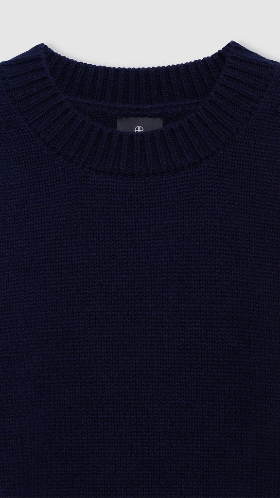 An essential wardrobe staple made from Anine Bing's signature 100% cashmere yarn with jersey stitch detailing in midnight blue.