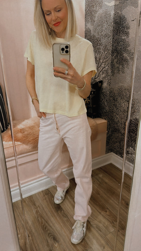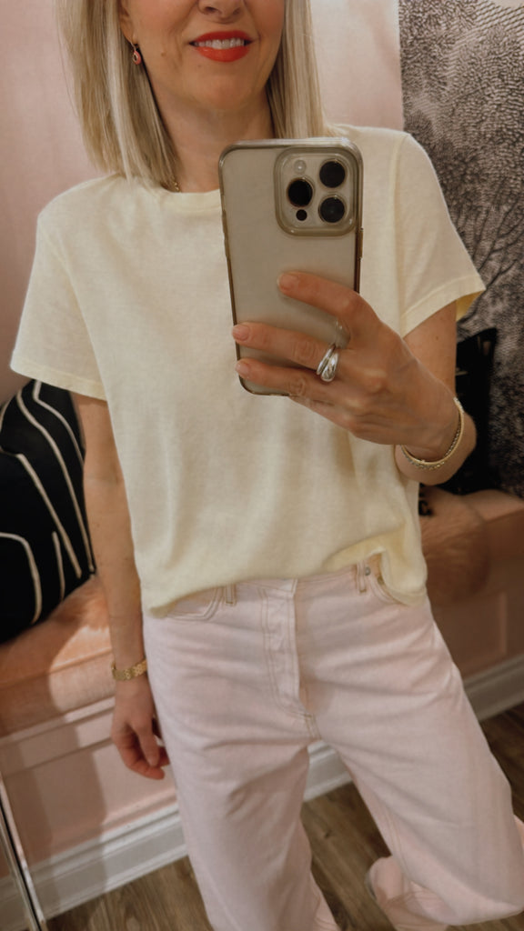 Effortless essential. The Kyle tee is the closet must-have designed to be worn season after season. The slightly cropped boxy fit styles perfectly back to your favorite high-rise denim cut-offs.