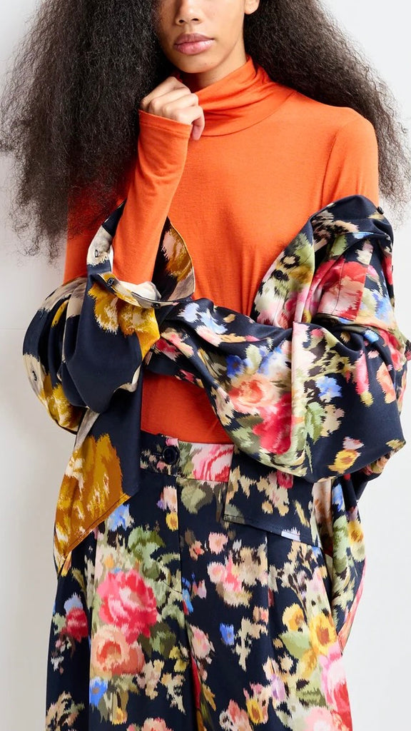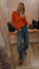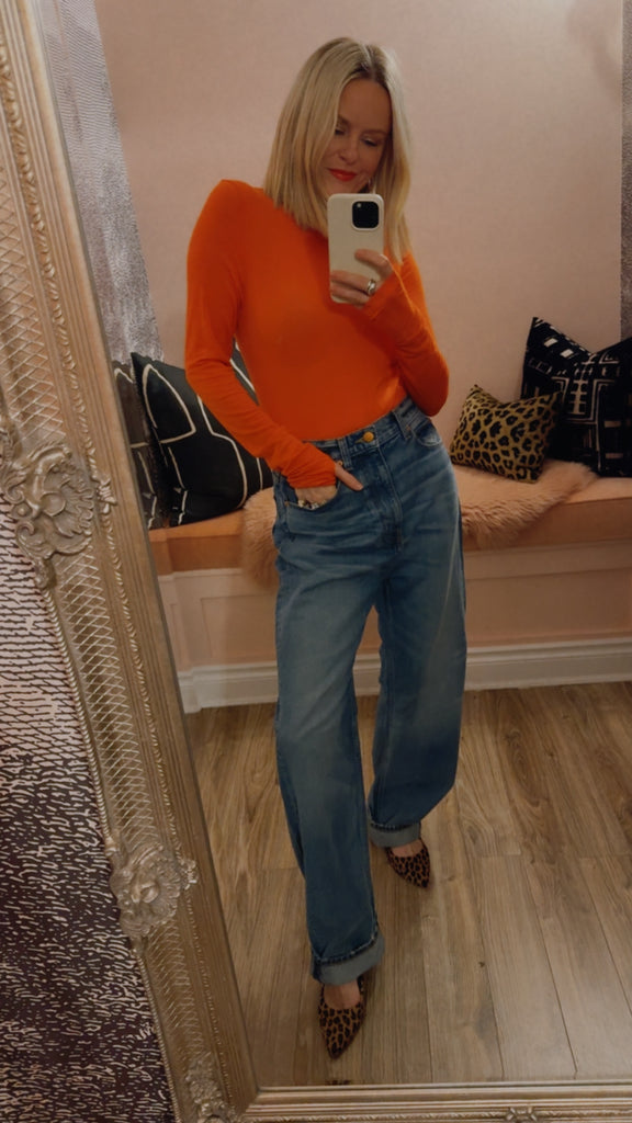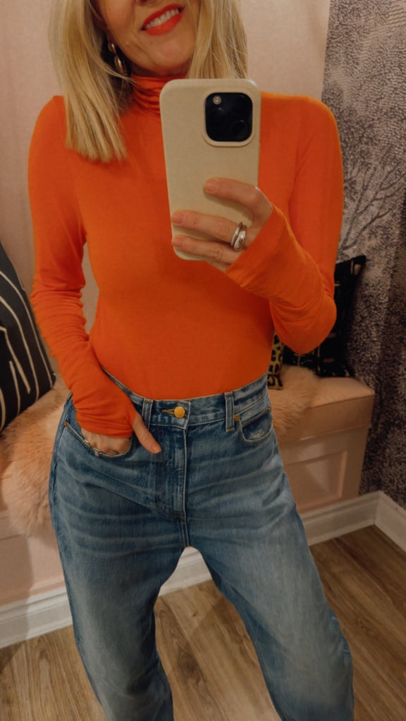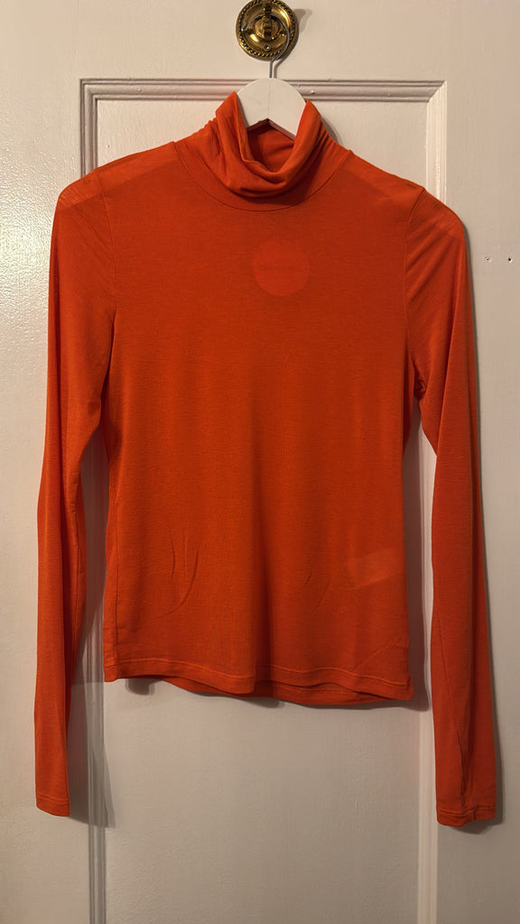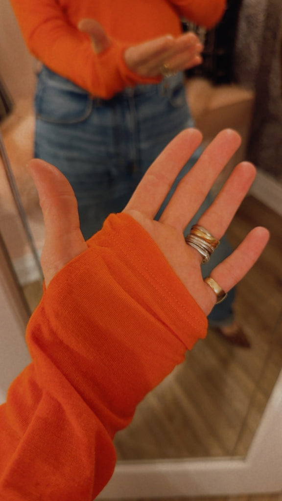 66% Viscose, 19% Nylon, 9% Cashmere, 6% Elastane, in Orange.