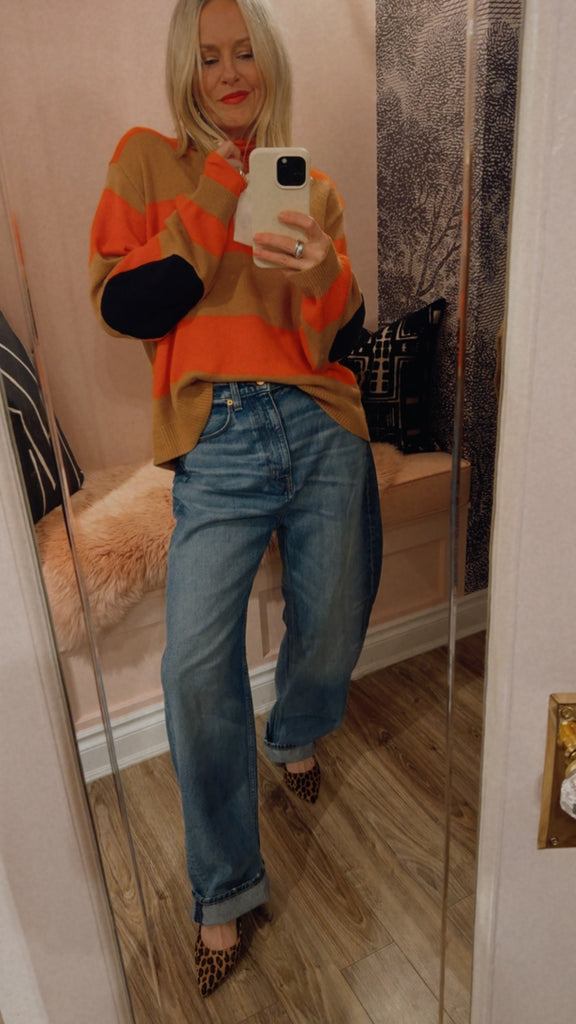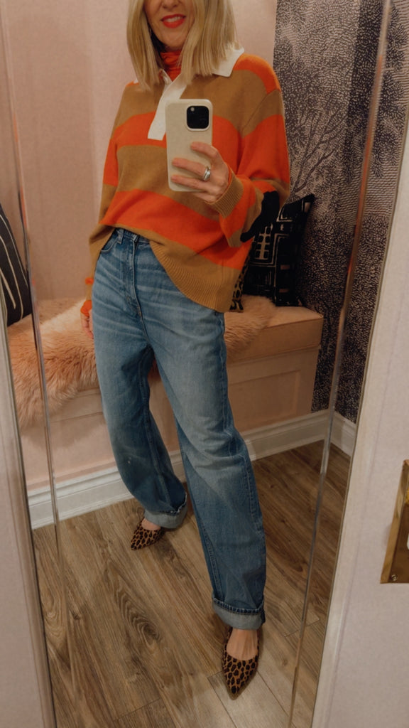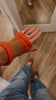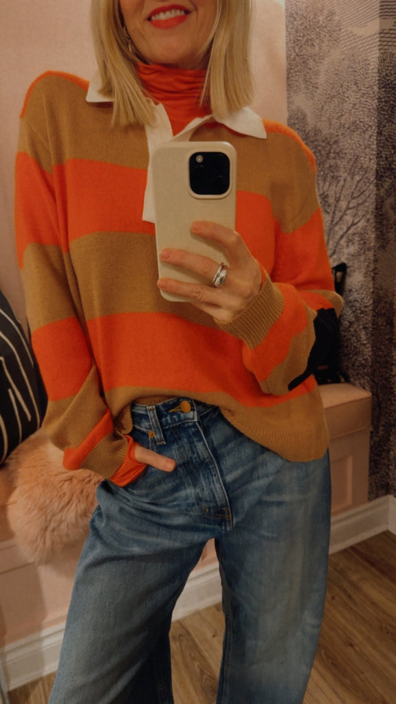 46% Wool, 25% Viscose, 24% Polyamide, 5% Cashmere, in Orange with Camel