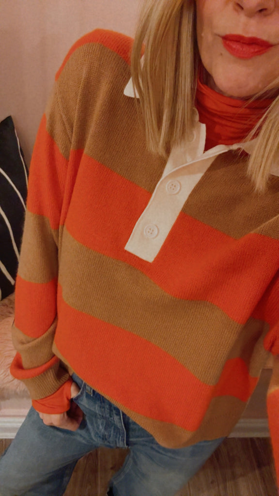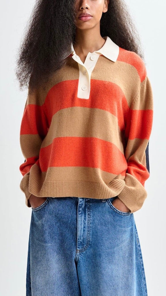 Polo-style sweater is knit from a soft wool blend that lends a cozy, elevated feel. Designed with a relaxed fit and finished with ribbed trims, it delivers effortless polish and comfort in one.