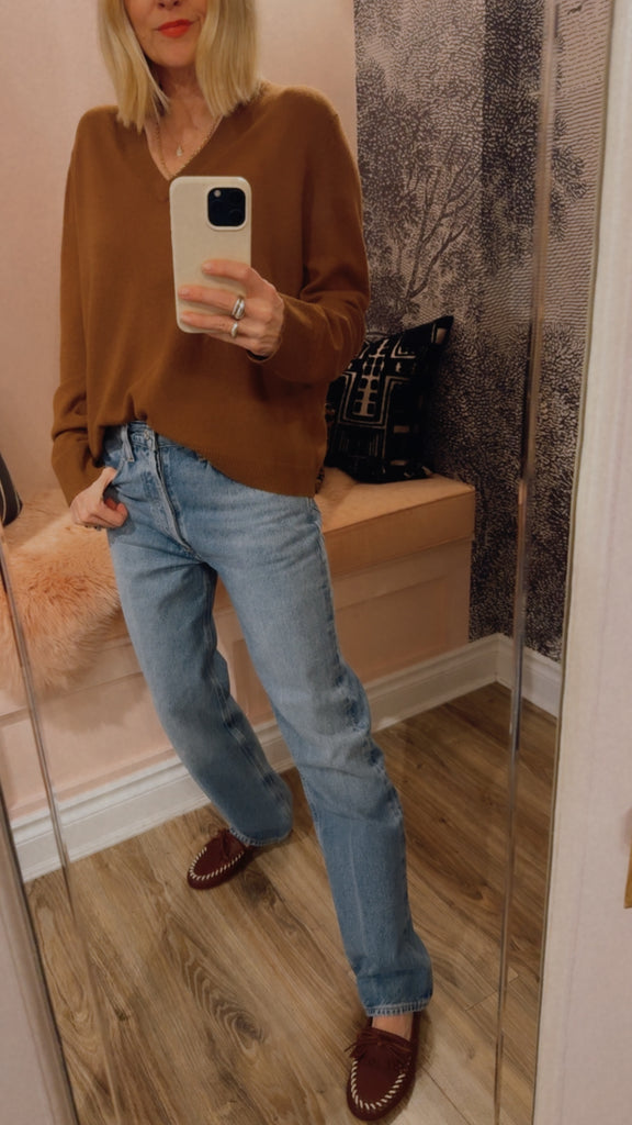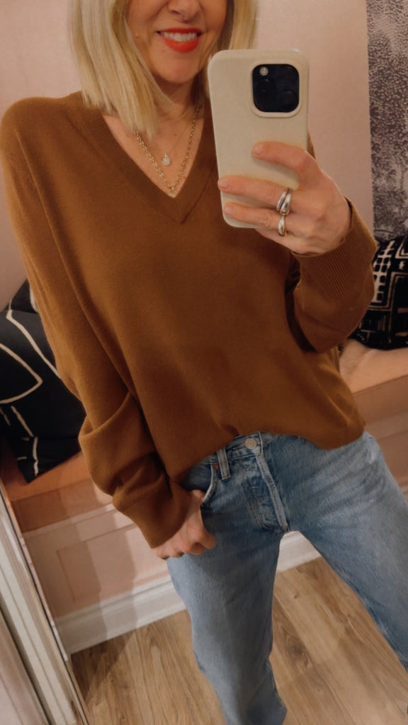 As a nod to the classics, this covetable 100% cashmere piece embraces all the ease of a relaxed fit knit with the sophistication of a v-neck silhouette. Tuck this lightweight layer into trousers or pair it with your favourite slip skirt to instantly upgrade any outfit.