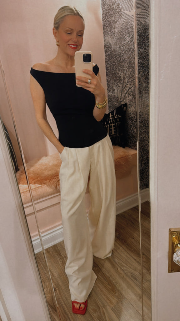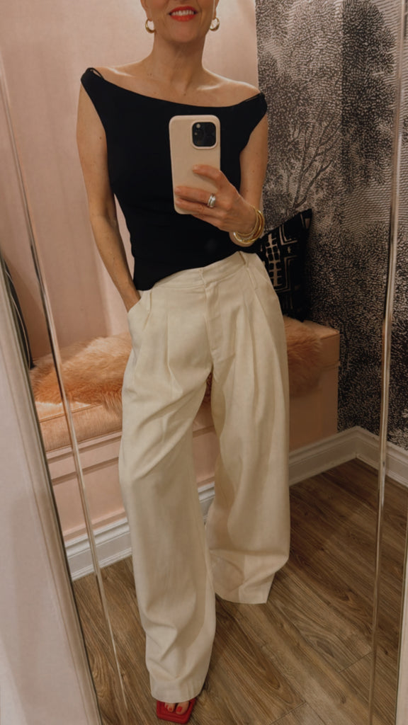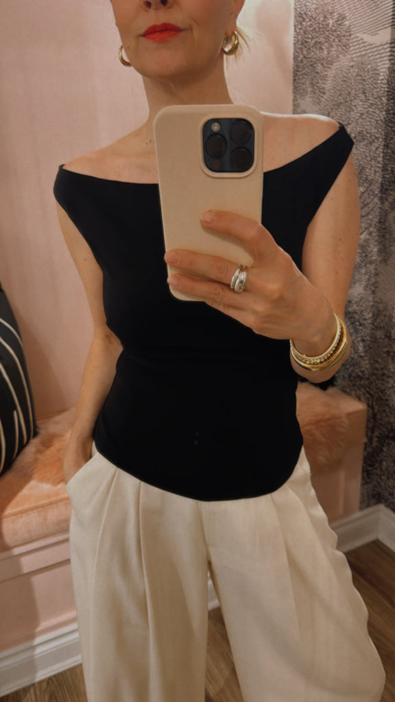 The Slim Bateau Top features a classic bateau neckline that elegantly frames the shoulders and collarbone, offering a refined and flattering silhouette. Designed for a close fit to the body providing a tailored look with subtle sophistication.