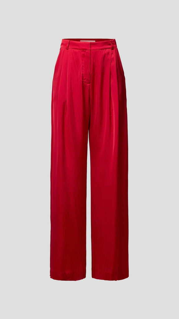 Offering fluid elegance and timeless appeal, the Whirlwind Pant is crafted from a fiery red cupro blend. Featuring a palazzo silhouette and a tailored waistband with belt loops, it’s accentuated with refined double pleats and back darts. Complete the look with this seasons red pieces for a chic, coordinated statement.
