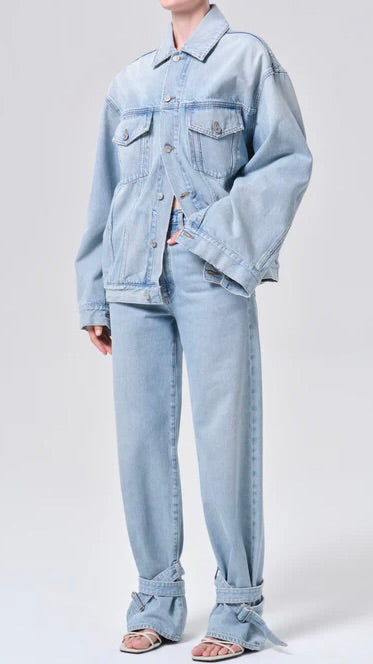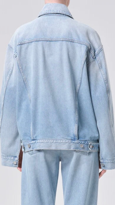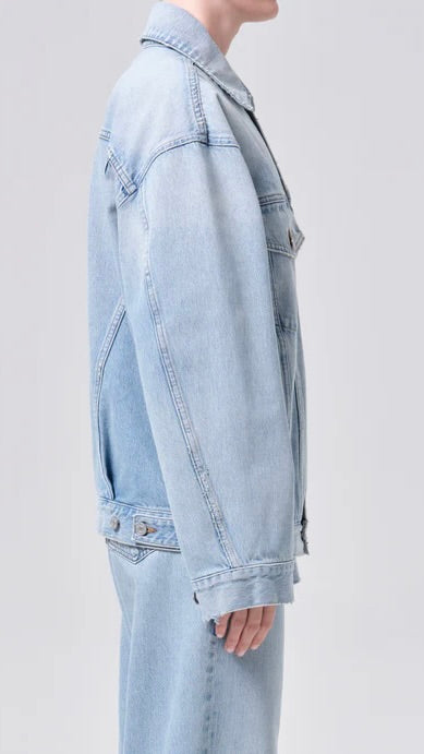 The Evin Jacket offers an effortless balance of structure and ease. Designed in a light vintage indigo wash, it features an oversized fit, elongated sleeves, and classic front pockets for a timeless denim look. Crafted from non-stretch cotton denim with a soft hand feel, it delivers all day comfort while maintaining a clean, sculpted shape.