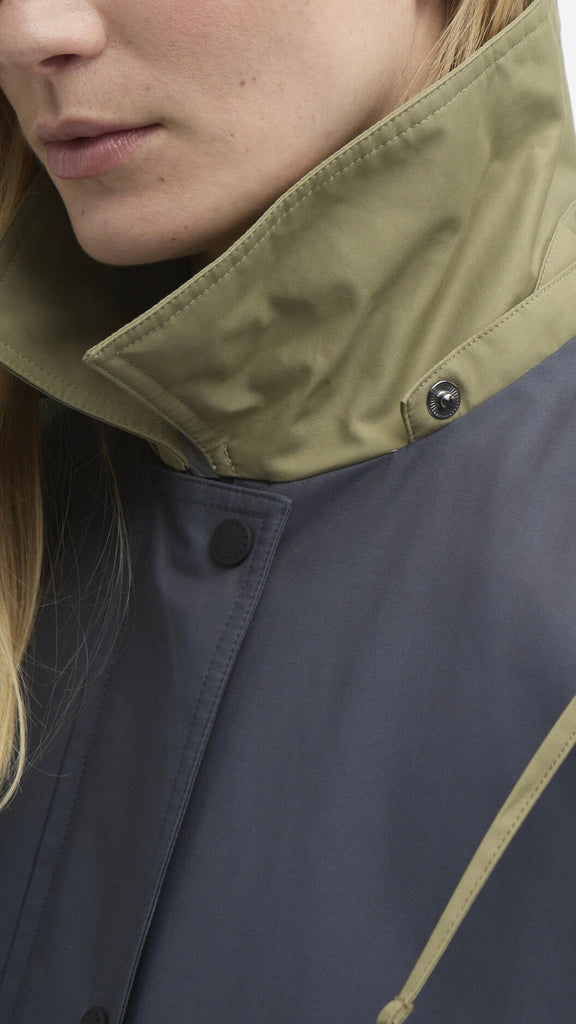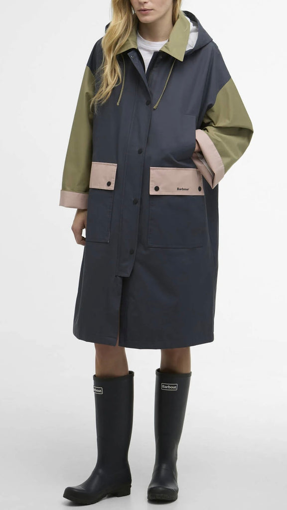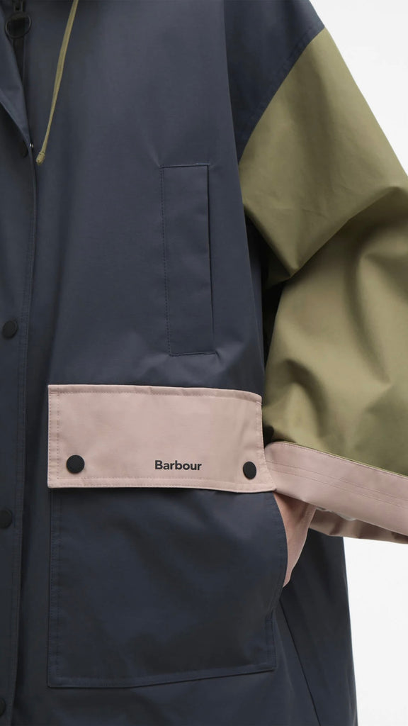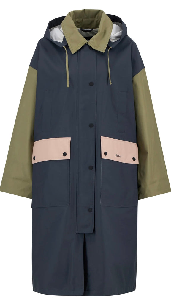 The Barbour Blearigg Showerproof Jacket is a longline design inspired by the classic Barbour Border style. Featuring an oversized fit, it includes a detachable hood for versatility, welt handwarmer pockets, and lower patch pockets for practicality. One colourway offers a bold colour-blocked design, adding a modern twist to this timeless showerproof jacket.