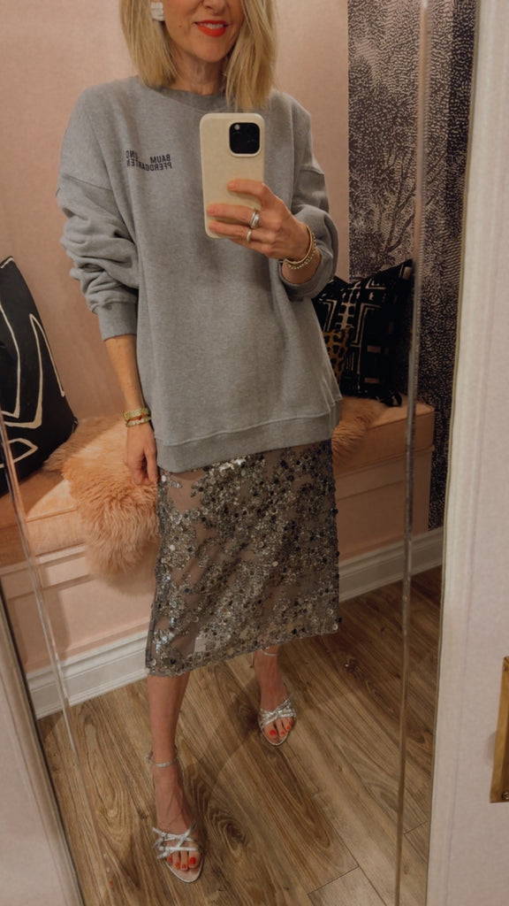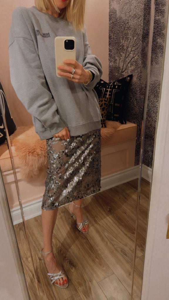 The Julle Sweatshirt is made in the softest organic cotton, it has an oversized fit with dropped shoulders and a classic crew neck. The sweatshirt has ribbed hemlines and a printed Baum und Pferdgarten logo at the chest and back.