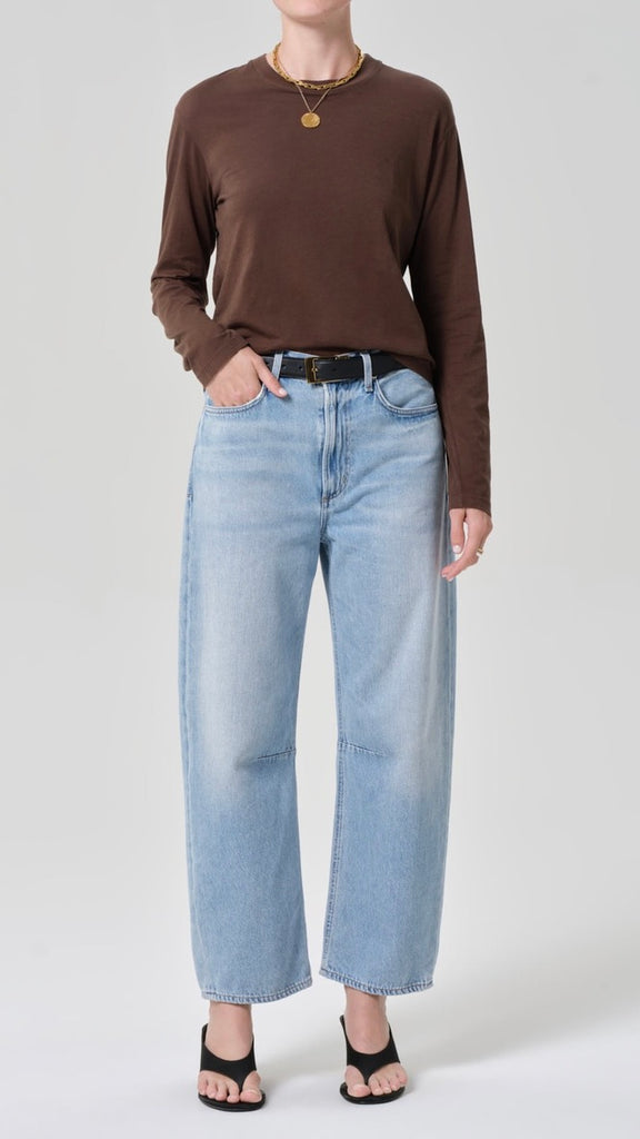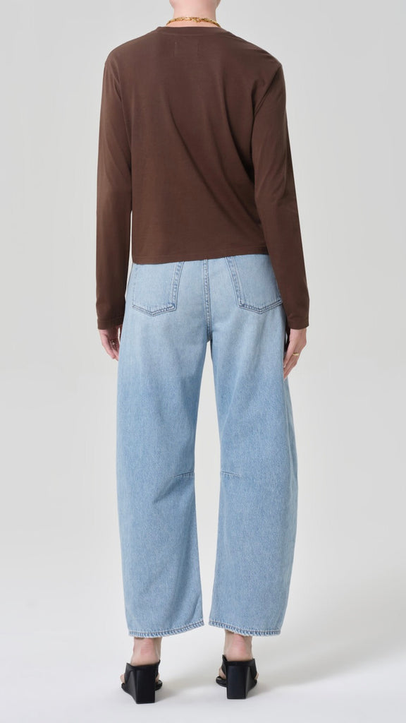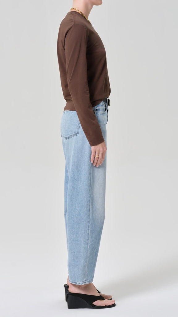 The Miro offers a refined take on the barrel silhouette, sitting high at the waist with a relaxed shape that softly tapers to the ankle. Crafted from rigid, non-stretch lightweight vintage denim with a soft hand, it delivers authentic texture and all-day ease. Finished in the Ritual wash—a light vintage indigo—it’s a timeless style with a modern, lived-in feel.