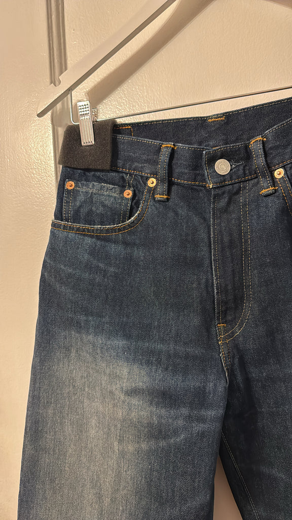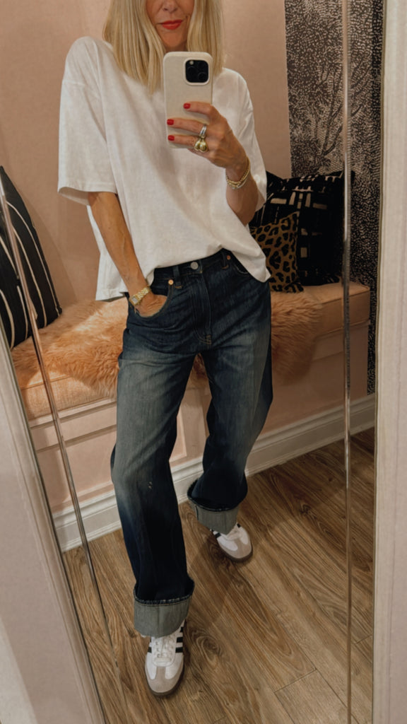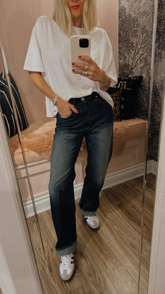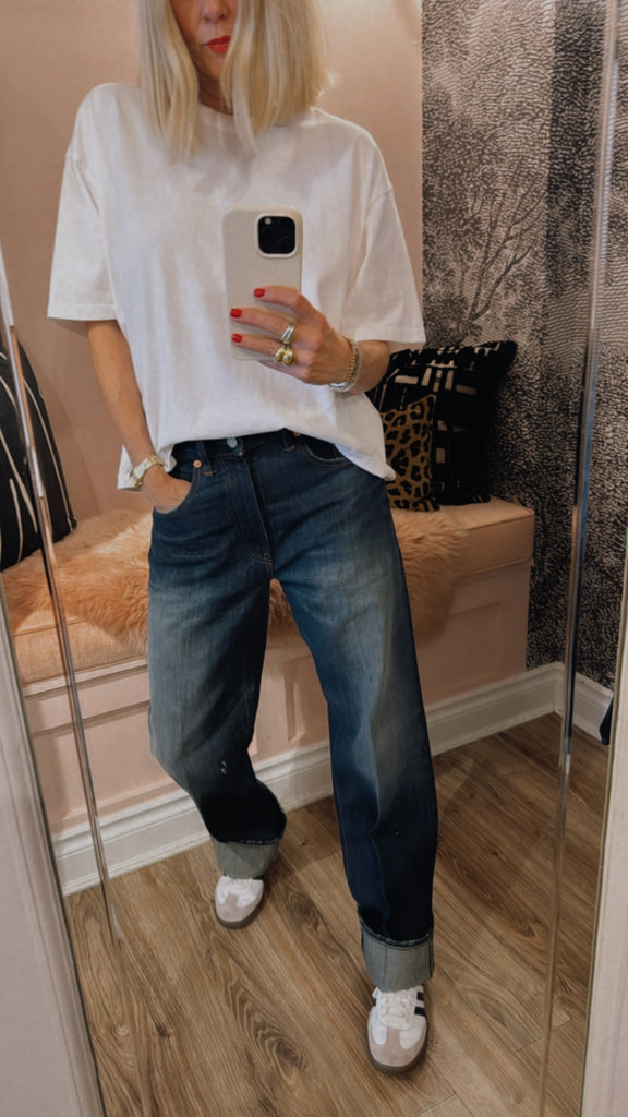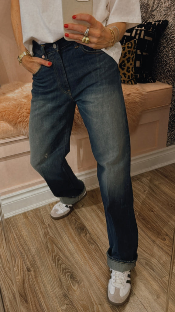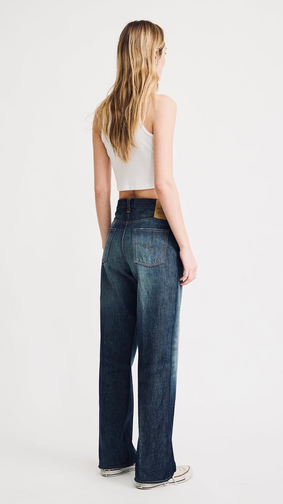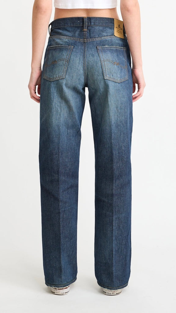 The Leanne Jean in Dewitt Blue features a relaxed straight-leg silhouette with a subtle fade, crafted from premium denim for everyday wear.