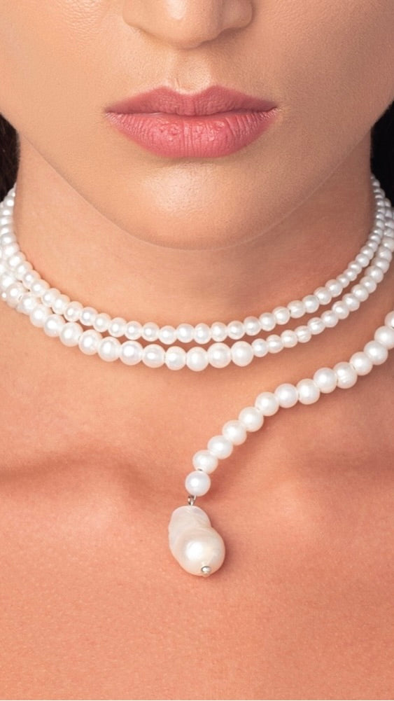 This luxurious pearl necklace is perfect for a formal occasion or special event. The cascading pearls create a timeless and sophisticated look.