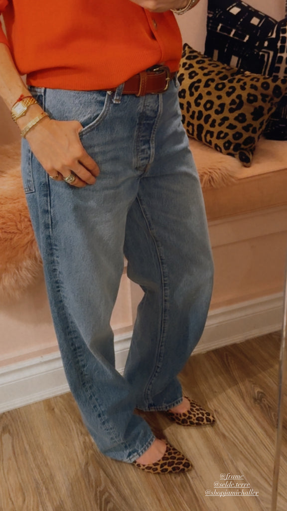 Rebecca is 5’5, and typically a size 4. She is wearing size 27 for a slouchy look.
