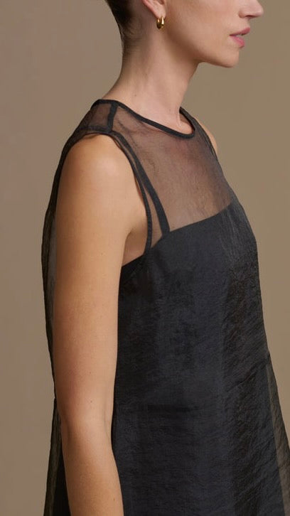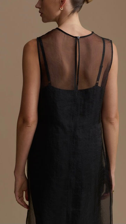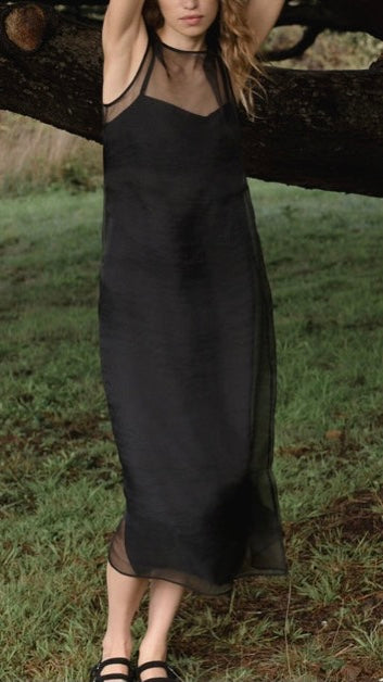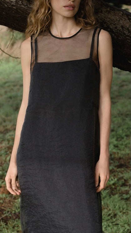 The Cora Dress is not your average dress—rather, it’s a subtle statement designed for day and night styling alike. Pairing a super soft, drapey camisole slip with a sheer organza top layer, it’s a delicate and dimensional piece that feels as effortless on as it looks. Adjustable straps, a narrow keyhole, and a single button in back complete its clean silhouette.