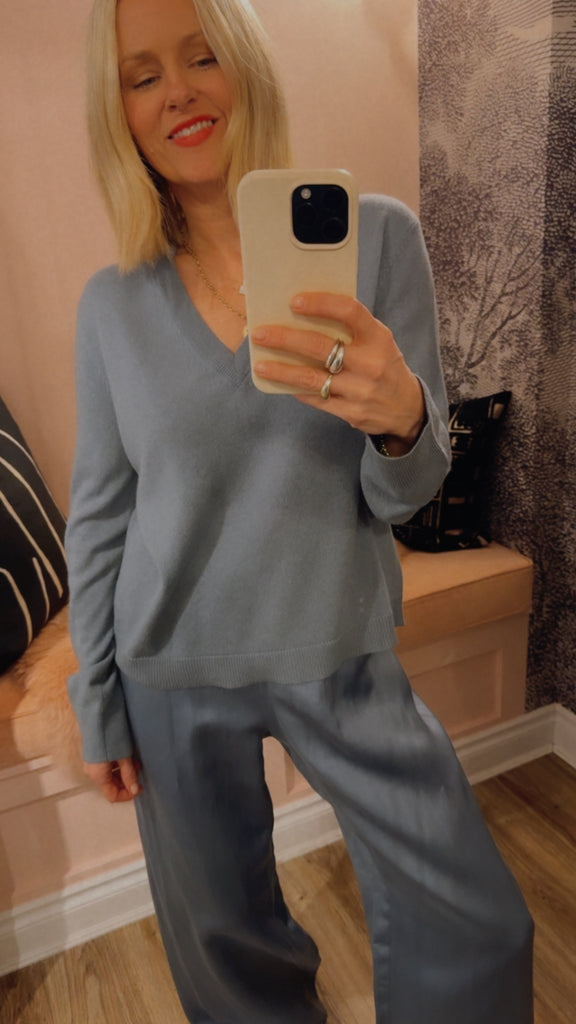 As a nod to the classics, this covetable 100% cashmere piece embraces all the ease of a relaxed fit knit with the sophistication of a v-neck silhouette. Tuck this lightweight layer into trousers or pair it with your favourite slip skirt to instantly upgrade any outfit.