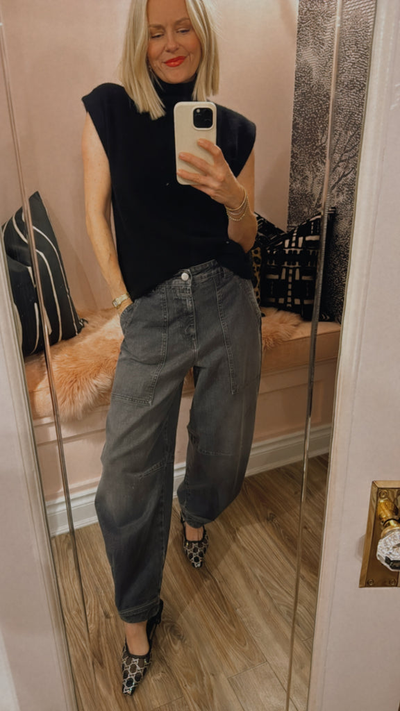 Rebecca is 5’5, and typically a size 4. She is wearing size Medium for a slouchier fit