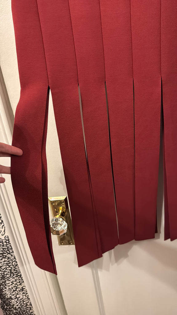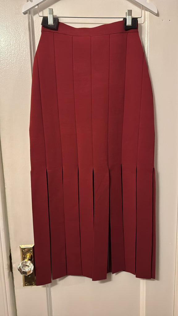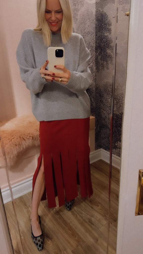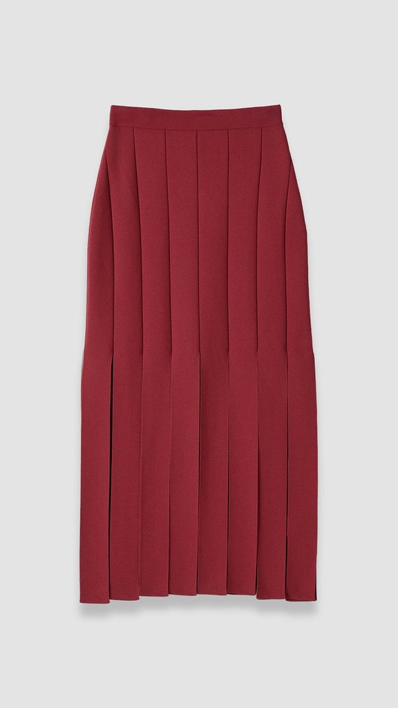 The Lagny Compact Milano Knit Skirt is a panelled, mid-length style, crafted from a stretchy viscose blend which adapts to the shape of the body. A statement ribbon fringe accents the hemline, bringing a sense of movement and flair to the silhouette.